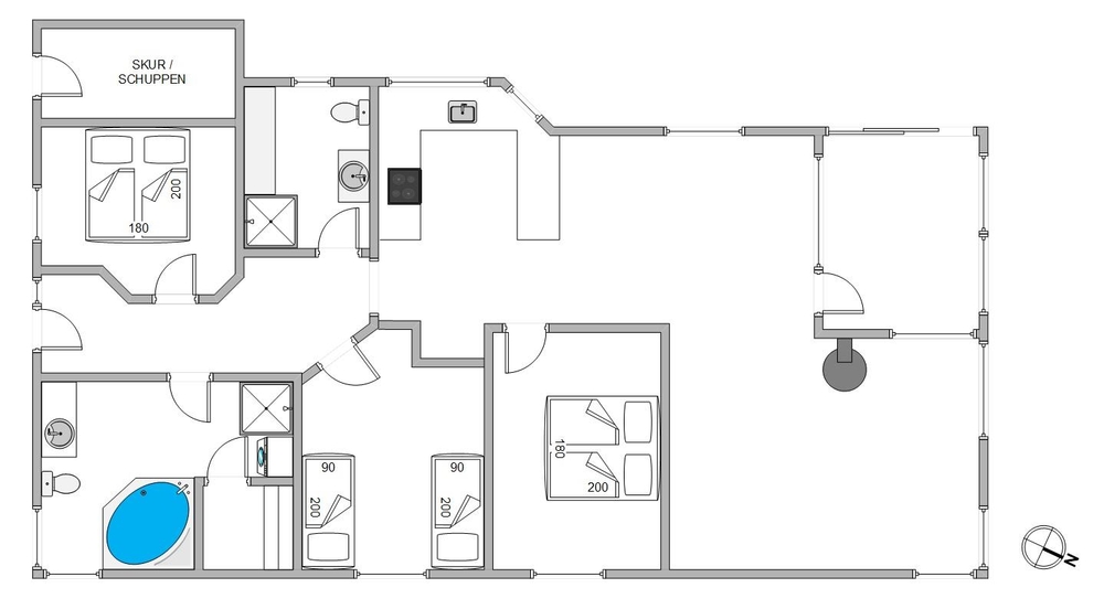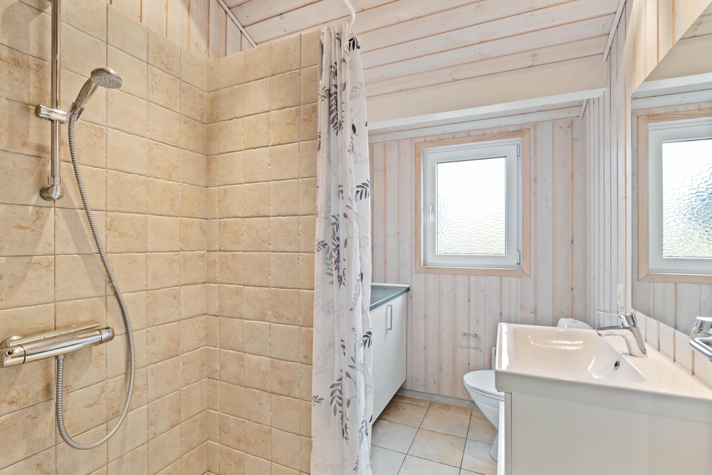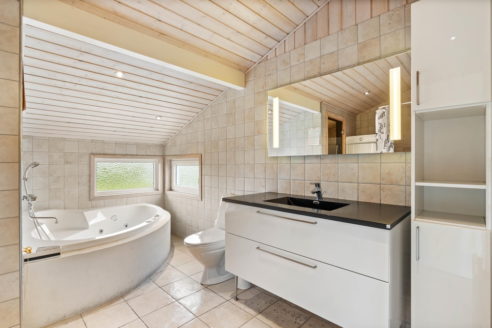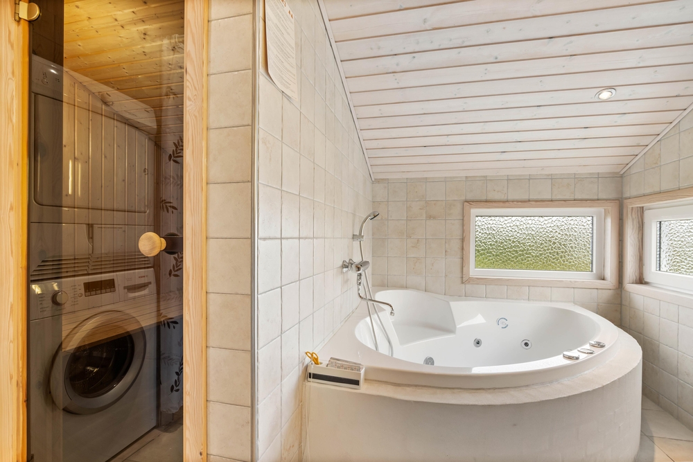 In einem der zwei Badezimmer mit Fußbodenheizung steht der Whirlpool und die Sauna. Nach einem langen Tag an der frischen Seeluft und am Strand kannst du hier die Seele baumeln lassen und dich wieder aufwärmen. Übrigens ist das Ferienhaus auch mit einer Waschmaschine, einem Trockner und einer Geschirrspülmaschine ausgestattet.