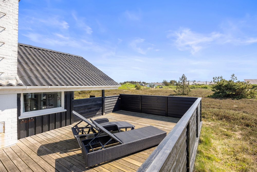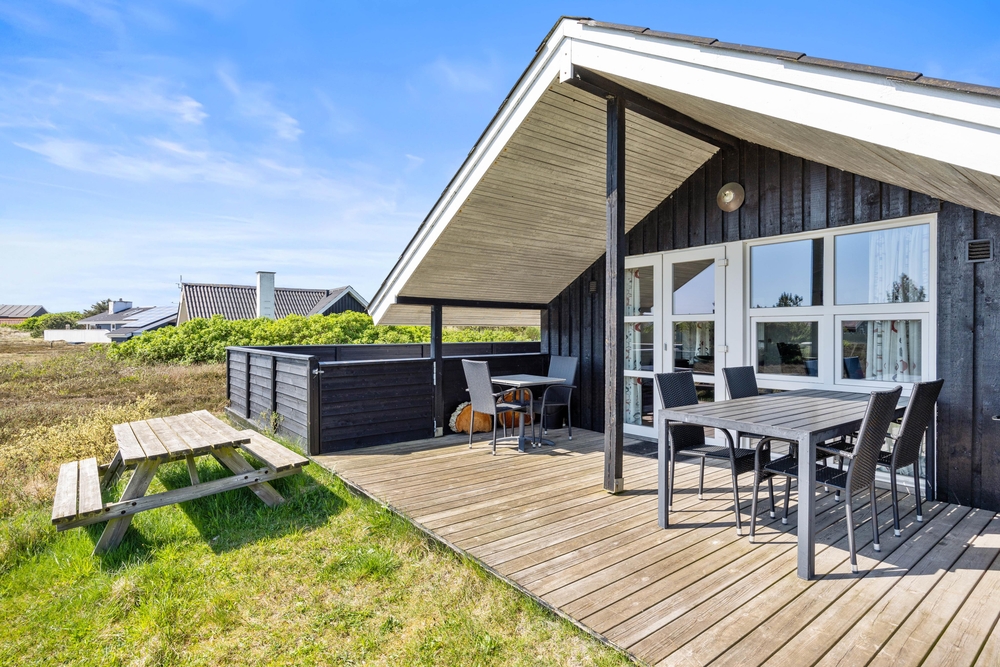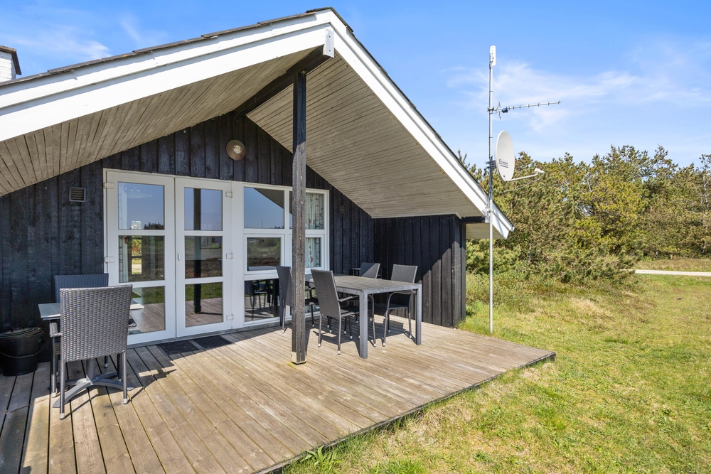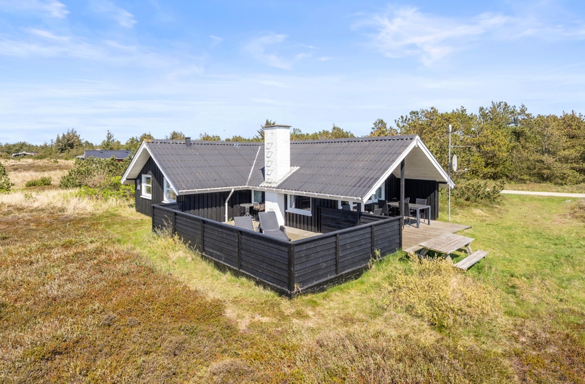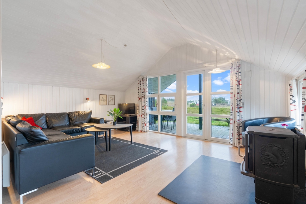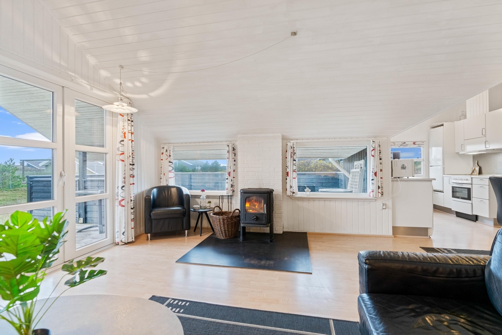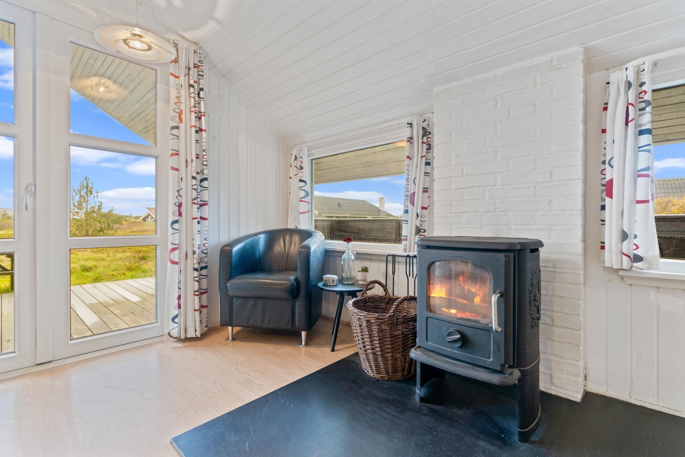 Dieses klassische 2-Sterne Ferienhaus mit geschlossener Terrasse, Kaminofen und Waschmaschine, findet ihr im Julianvej 22 A in Bjerregard in der Nähe vom Kaufmann und dem feinen Sandstrand der dänischen Westküste.