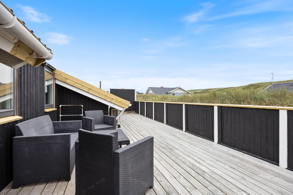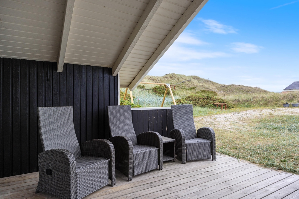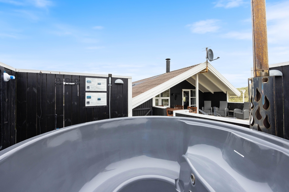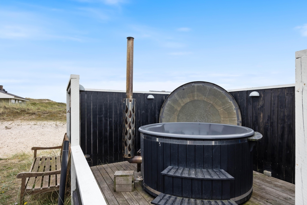 Die Terrasse bietet verschiedene Sitzmöglichkeiten, aber das absolute Highlight ist die beheizbare Badetonne, die den Sonnenuntergang zum einzigartigen Erlebnis macht. Aber auch am Tage lässt es sich gut auf der Terrasse verweilen, um nach einem ausgedehnten Strandspaziergang die Beine hochzulegen. Für die Kleinen gibt es einen Sandkasten und selbst die Hunde können sich auf der geschlossenen Terrasse austoben ohne Gefahr zu laufen, dass sie entlaufen.