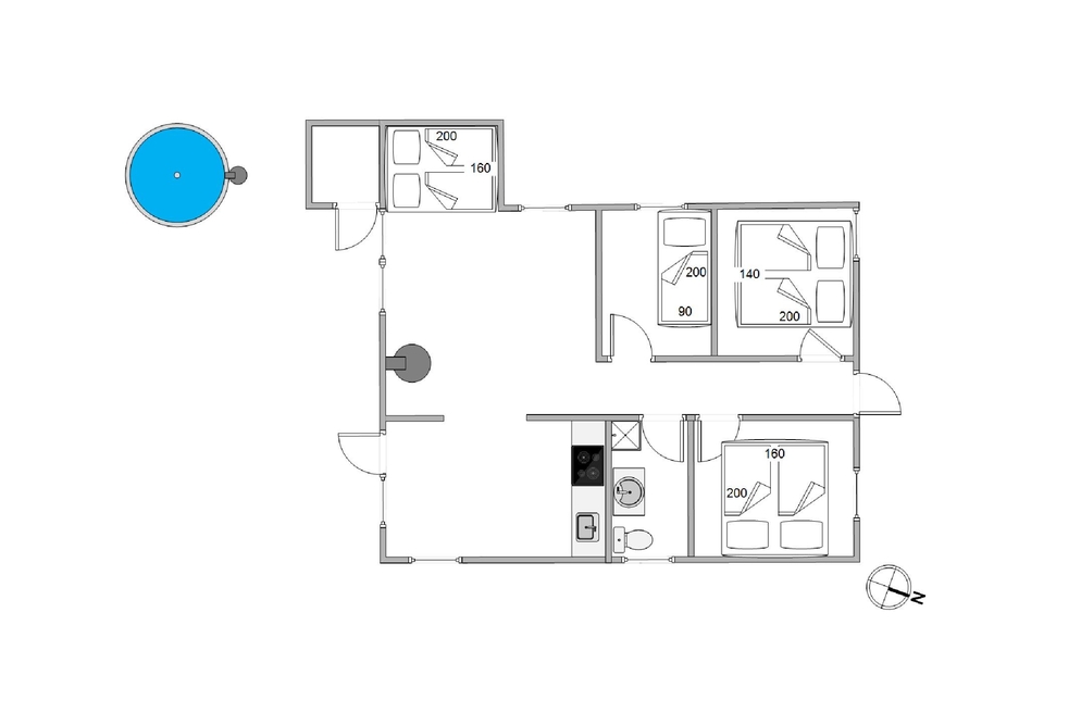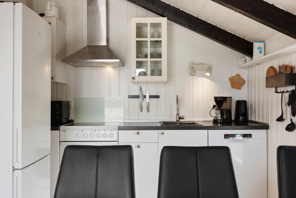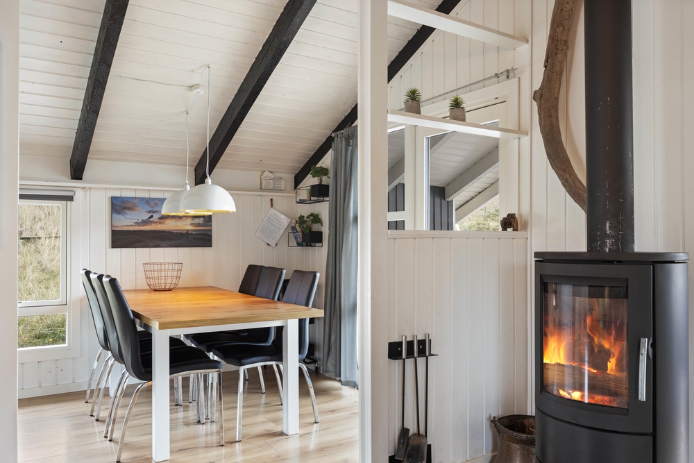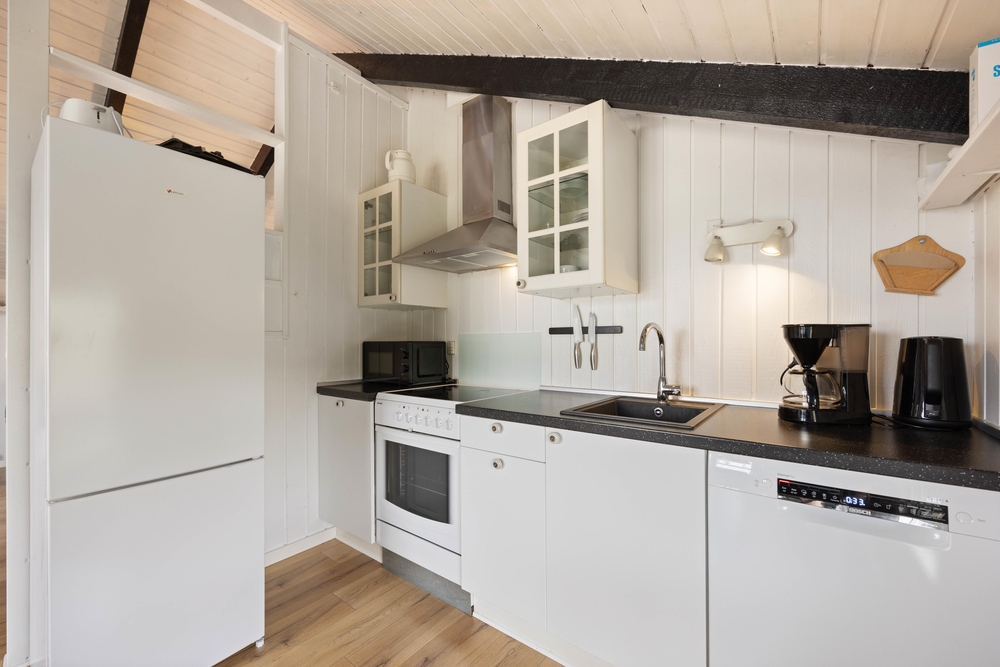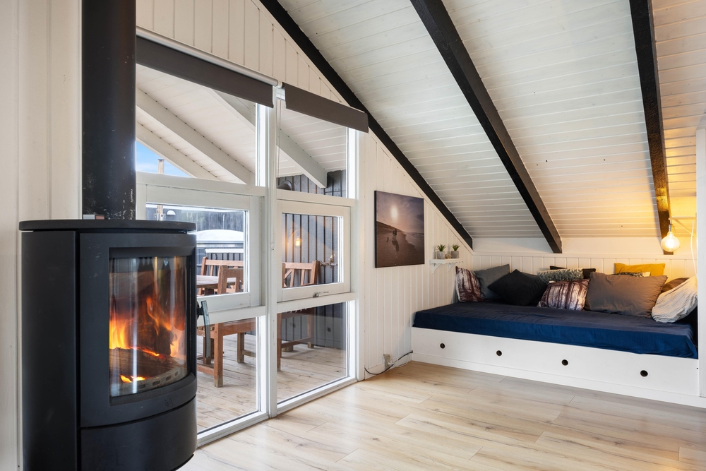 Vom Haupteingang aus tretet ihr in den Flur, von dem aus ihr in die Schlafzimmer und das Badezimmer mit Fussbodenheizung kommt. Im Haus findet ihr 3 Schlafzimmer mit 2 Doppelbetten und einem Einzelbett. Im Wohnzimmer habt ihr die Möglichkeit aus der Kuschel- und Leseecke einen Schlafplatz für zwei zu machen. Die Zimmer sind mit hellem Holz bekleidet und im typischen skandinavischen Stil eingerichtet. Die Küchenzeile bietet alles was der Koch der Familie benötigt und den Abwasch erledigt die Spülmaschine, damit ihr so viel Zeit wie möglich gemeinsam vor dem Kamin, beim Kartenspiel in der Essecke oder draußen auf der teilweise überdachten Terrasse verbringen könnt.