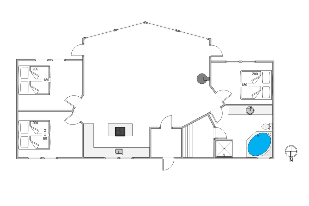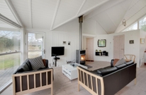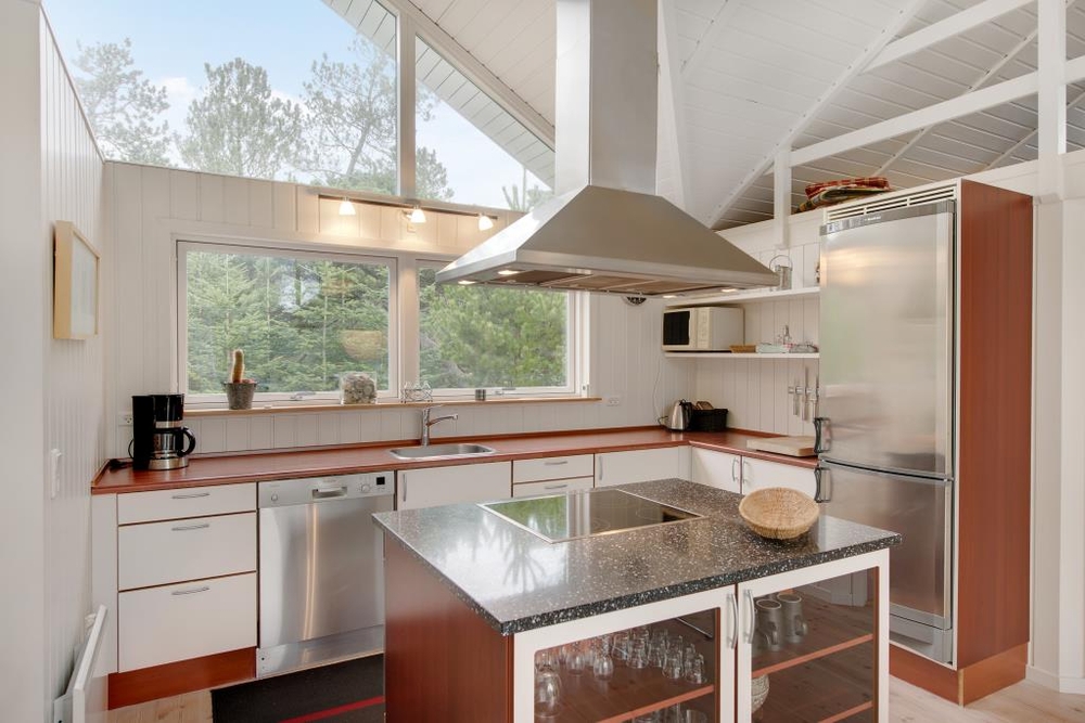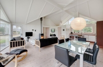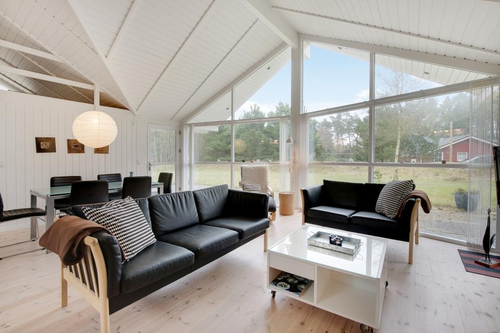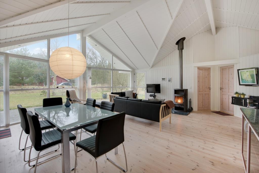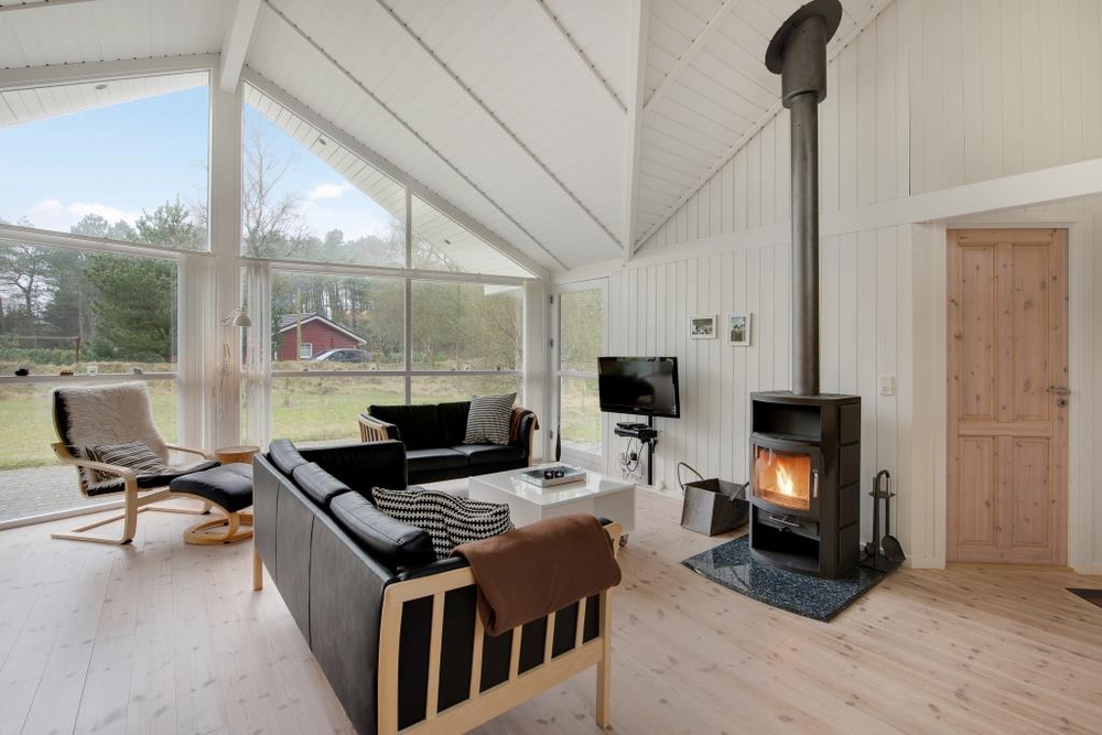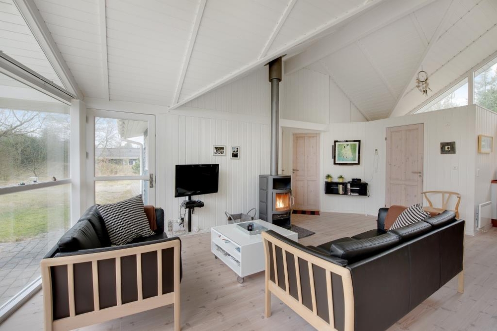 Von innen ist das Nicht-Raucher-Haus im Juulsvej 8 E in Ho schön hell eingerichtet und wirkt durch die hohen Decken und vor allem der großen Fensterfront im Wohnbereich noch größer und offener. Für eine gemütliche Atmosphäre sorgt abends oder in der kälteren Jahreszeit der Kaminofen.
