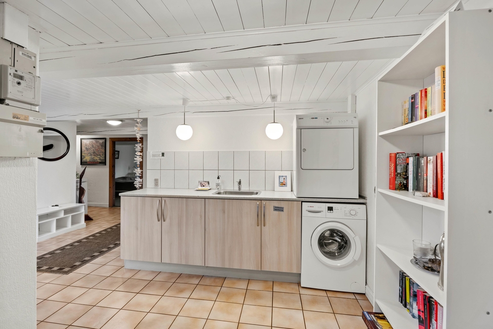 Das Badezimmer der Ferienwohnung ist mit einer Fußbodenheizung ausgestattet und im Hauswirtschaftsraum findet ihr sowohl eine Waschmaschine als auch einen Trockner, somit habt ihr jeden Tag frische Handtücher.
