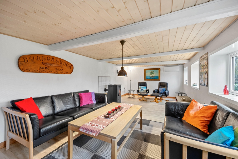 Im Wohnzimmer könnt ihr viele schöne Stunden mit der ganzen Familie verbringen. An einem windigen Herbsttag könnt ihr den Kaminofen mit Holzpellets anheizen und euch von seiner wohligen Wärme umhüllen lassen, während ihr dem Knistern des Feuers lauscht. Ganze zwei energiesparende Wärmepumpe könnt ihr bei Bedarf einschalten.