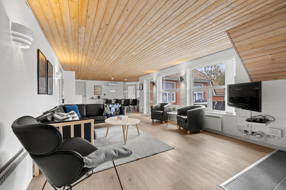 Das schöne Backsteinhaus am Kærvej 33, das Platz für 8 Personen bietet, ist hell und modern eingerichtet, und wird u.a mit einer Wärmepumpe geheizt.