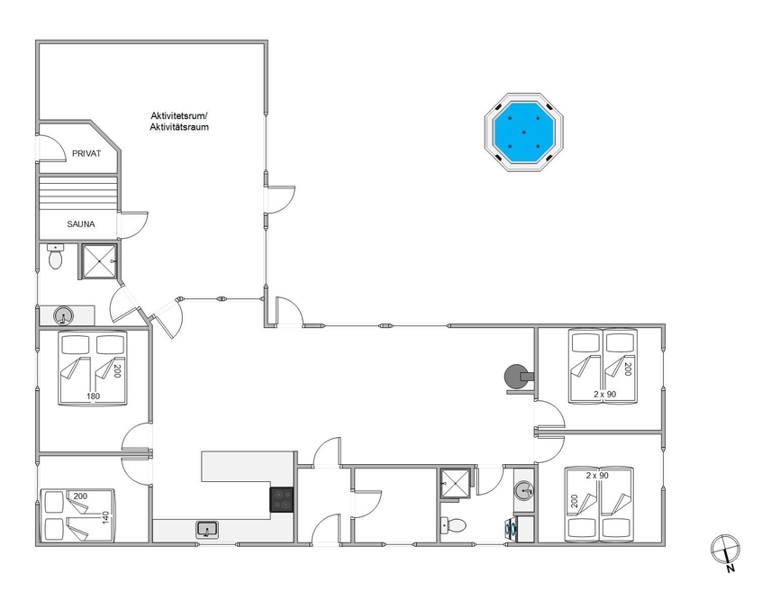 Um das Luxusgefühl zu vervollständigen, findet Ihr in diesem Ferienhaus auch einen Aktivitätsraum. Dieser Raum bietet einen Billardtisch, Tischtennis, Tischfußball und Darts und ist somit ein wahres Paradies vor allem für die Kinder und die kindlichen Seelen.