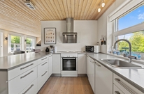 Die Küche ist mit dem Wohnraum verbunden, wo die vielen großen Fenster viel Licht ins Haus, und den Raum noch größer und heller wirken lassen. Die Küche ist gut ausgestattet, und zusätzlich zu Geschirrspüler und Mikrowelle bietet die Küche einen separaten Gefrierschrank von 80L, um euere Einkäufe erledigen zu können.