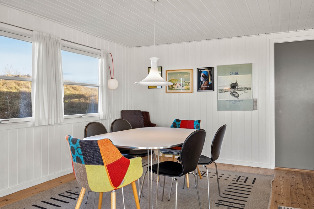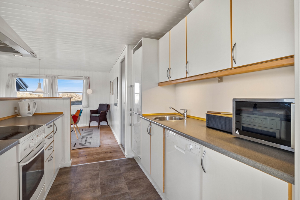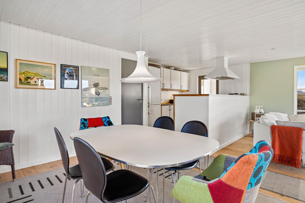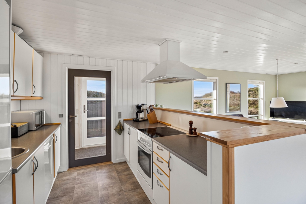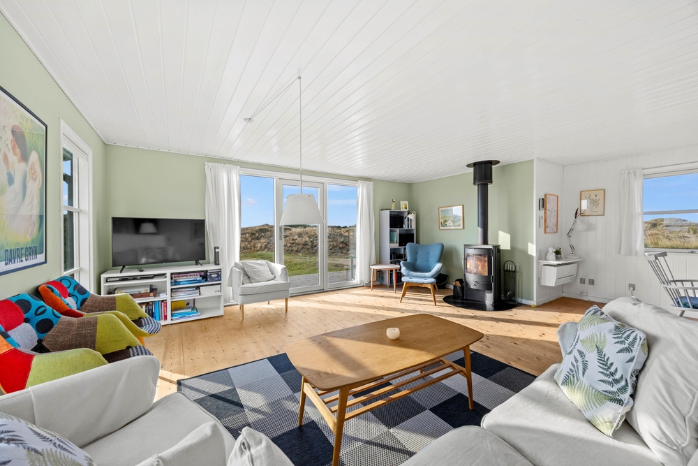 Gemütlichkeit und die Liebe zum Detail begegnen euch in diesem Ferienhaus überall. Hier kann man sich einfach nur sofort zu Hause fühlen. Mit kuscheligen Fellen und Kissen wird dieses Ferienhaus zu einer kleinen Wohlfühloase umgeben von Ruhe und Natur. Küche, Wohn- und Essbereich sind alle miteinander verbunden. Gemütliche Stunden eingekuschelt auf dem Sofa, vor dem wärmenden Kamin, oder bei einem leckeren, dänischen ?Frokost? am Esstisch, könnt Ihr hier genießen.
