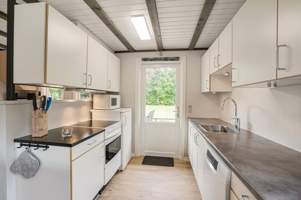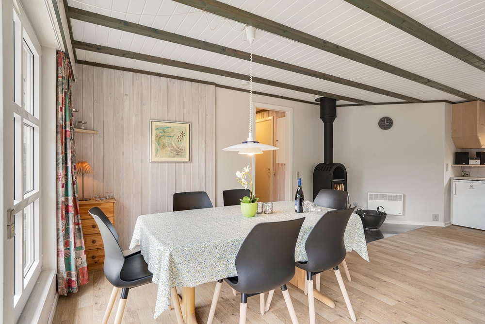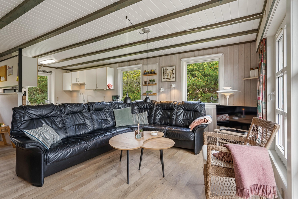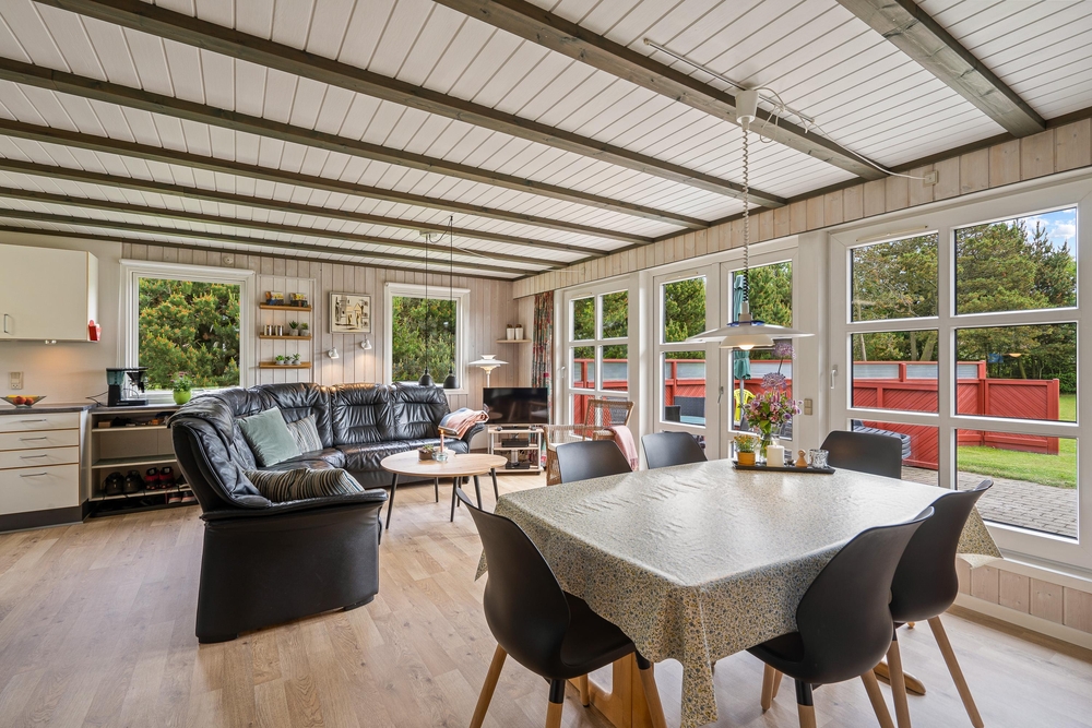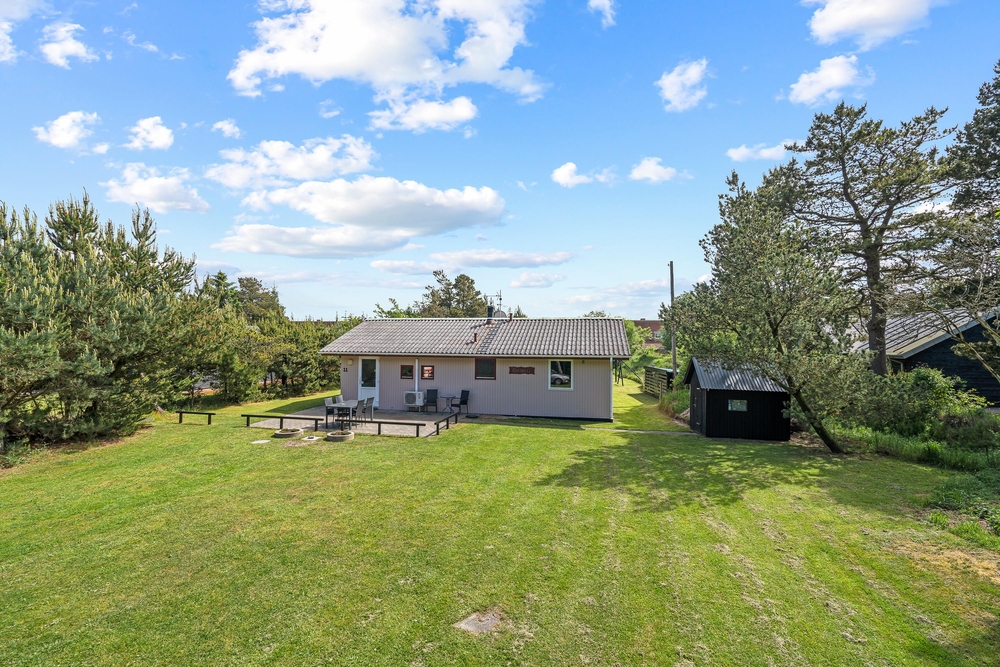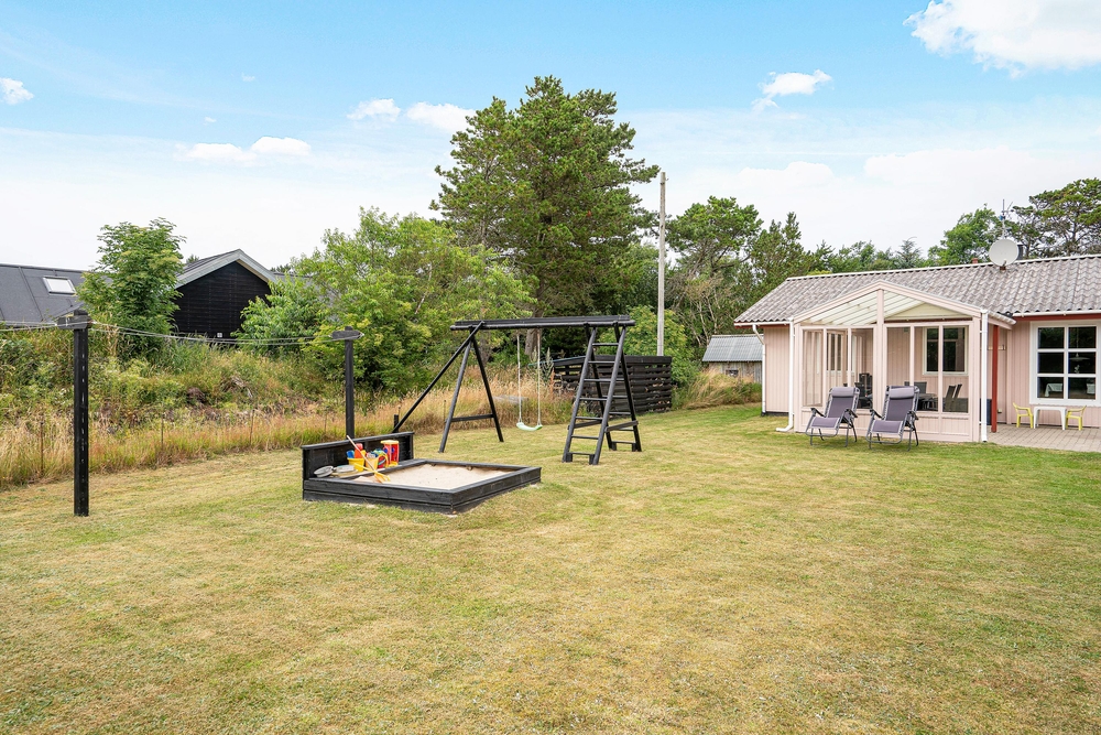Dieses traditionelle von Bäumen und Büschen gut abgeschirmtet Ferienhaus auf Kallesensvej 11 liegt an Ende einer Sackgasse und hat Platz für eine Familie mit bis zu 6 Personen. Das Haus verfügt über eine Sauna und einen Kamin sowie Sandkasten und Schaukel für die Kleinsten. Auf dem großen Grundstück ist viel Platz zum Herumtoben und Spielen. Hier wurde praktisch und gemütlich eingerichtet und im Grunde findet ihr hier alles, um einige schöne und erholsame Tage ganz nah am Meer verbringen zu können.