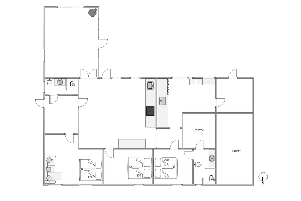 Kaniavej 37 hat eine Große Wohnfläche von 152 m², die gut ausgenutzt ist. Das Ferienhaus ist auf einer Ebene, was für eine Kinderfamilie bestimmt sehr angenehm ist.