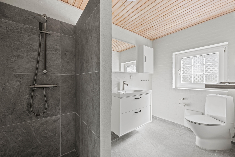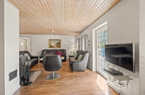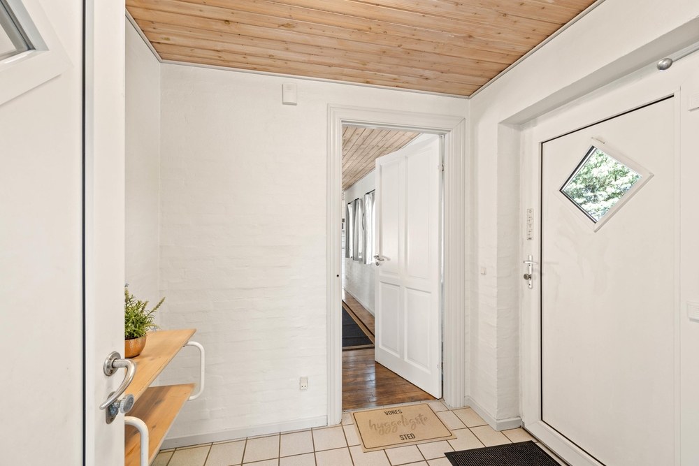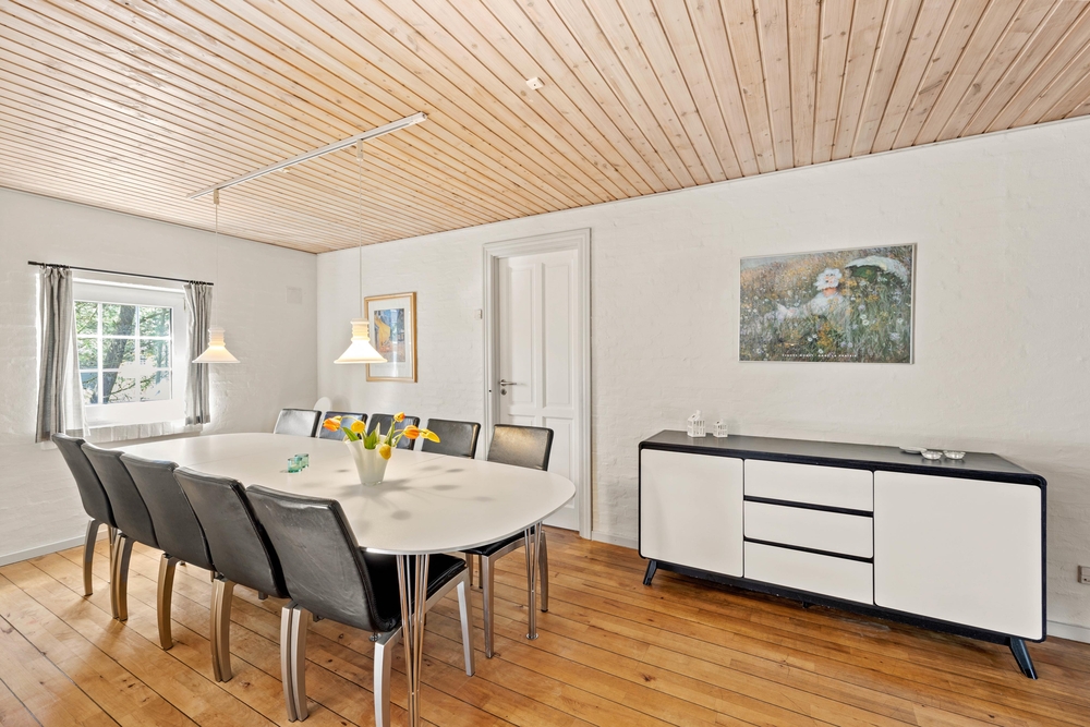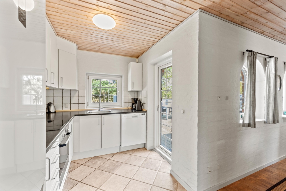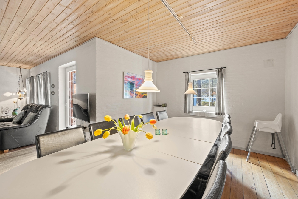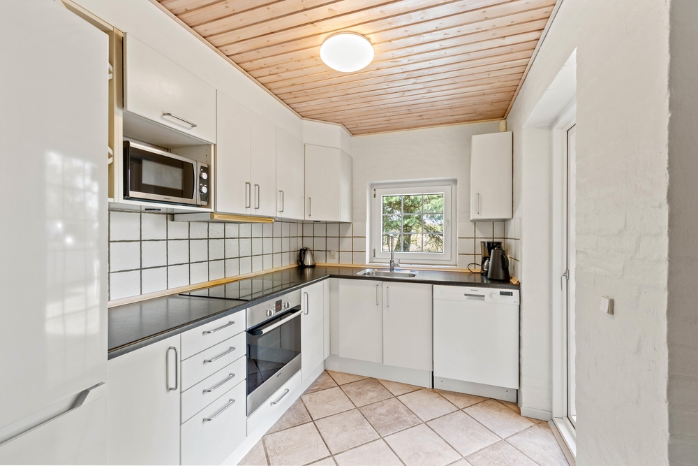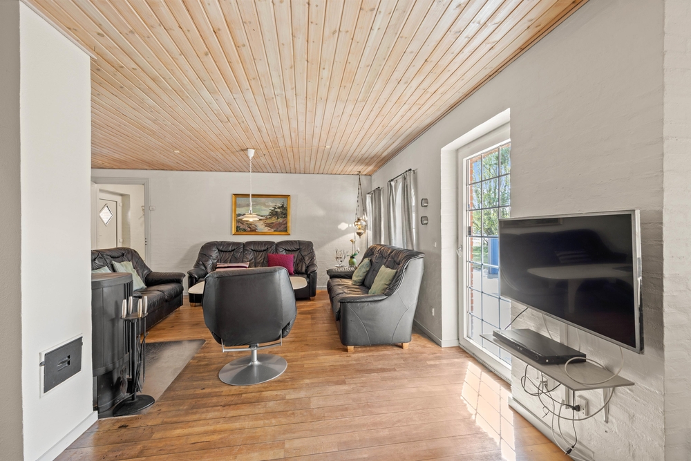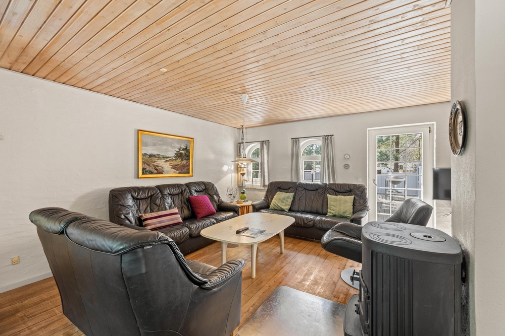 Dieses schöne Ferienhaus verfügt über einen klassischen, dänischen Einrichtungsstil. Im großzügigen Wohnbereich findet ihr bequeme Sofas, auf denen ihr abends gemeinsam Fernsehen gucken könnt, während im Kamin das Holz knistert. Dies sorgt für eine besonders hyggelige Atmosphäre. Zusätzlich steht euch die energiesparende Wärmepumpe zum Heizen zur Verfügung.