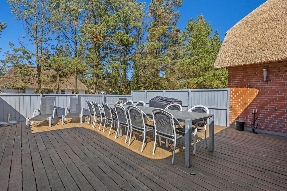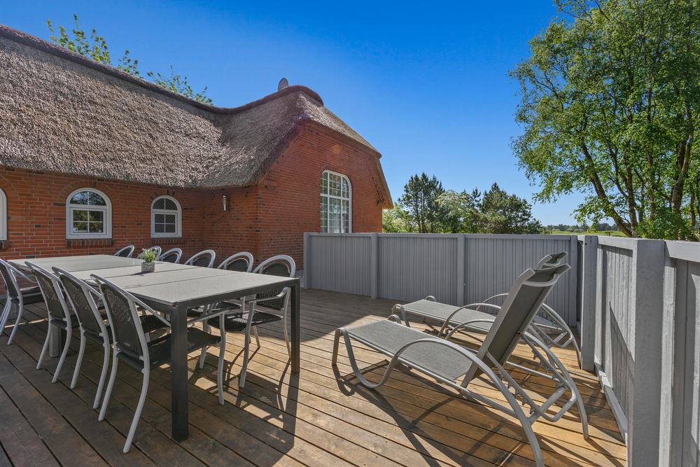 Dieses im Jahre 2021 renovierte Reetdachhaus bietet euch auf 250 qm jede Menge Platz für einen schönen und entspannten Urlaub auf der Nordseeinsel Rømø. Im eigenen Pool und Spabereich, könnt ihr den Alltagsstress vergessen und auf der Terrasse die frische Meeresluft genießen.