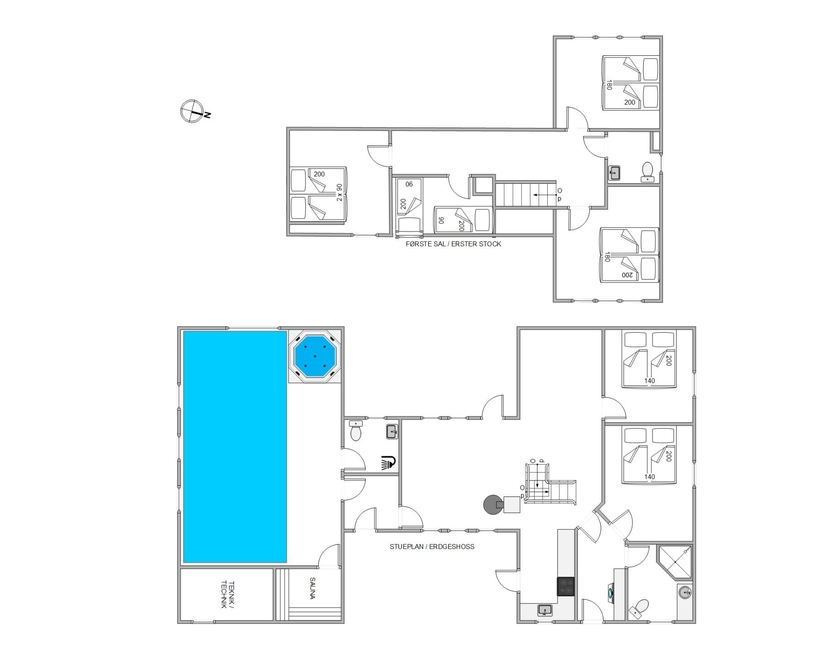 So könnt ihr z. B. eine Runde im Pool schwimmen oder mit euren Kindern planschen. Oder ihr entspannt im heißen Wasser des Whirlpools und anschließend bei einem ausgiebigen Saunagang. Dank der 2 Bäder mit Fußbodenheizung und dem zusätzlichen Gäste-WC, könnt ihr euch gut aufteilen und Wartezeiten vermeiden. Am Abend warten insgesamt 6 kuschlige Schlafzimmer mit bequemen Betten auf euch. In einem der Schlafzimmer gibt es einen weiteren Fernseher.