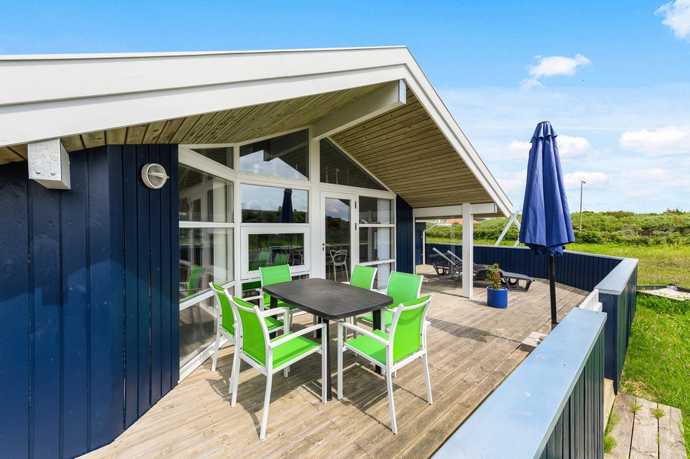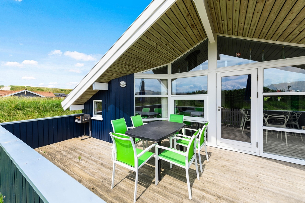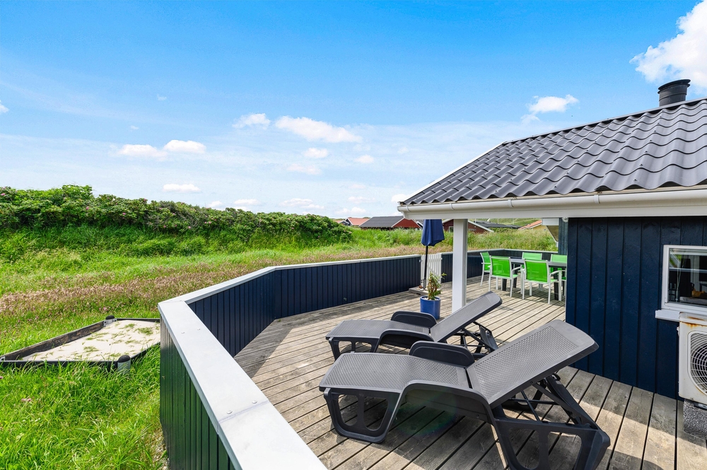 Das Ferienhaus ist von einer völlig geschlossenen Terrasse umgeben und mit Gartenmöbeln, Liegestühlen sowie einem Grill ausgestattet. Somit steht einem entspannten Grillabend mit der ganzen Familie zum Ausklingen des erlebnisreichen Ferientages nichts im Wege.