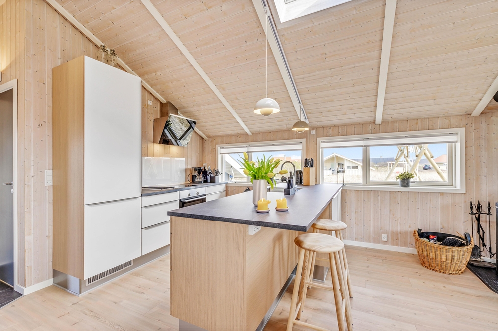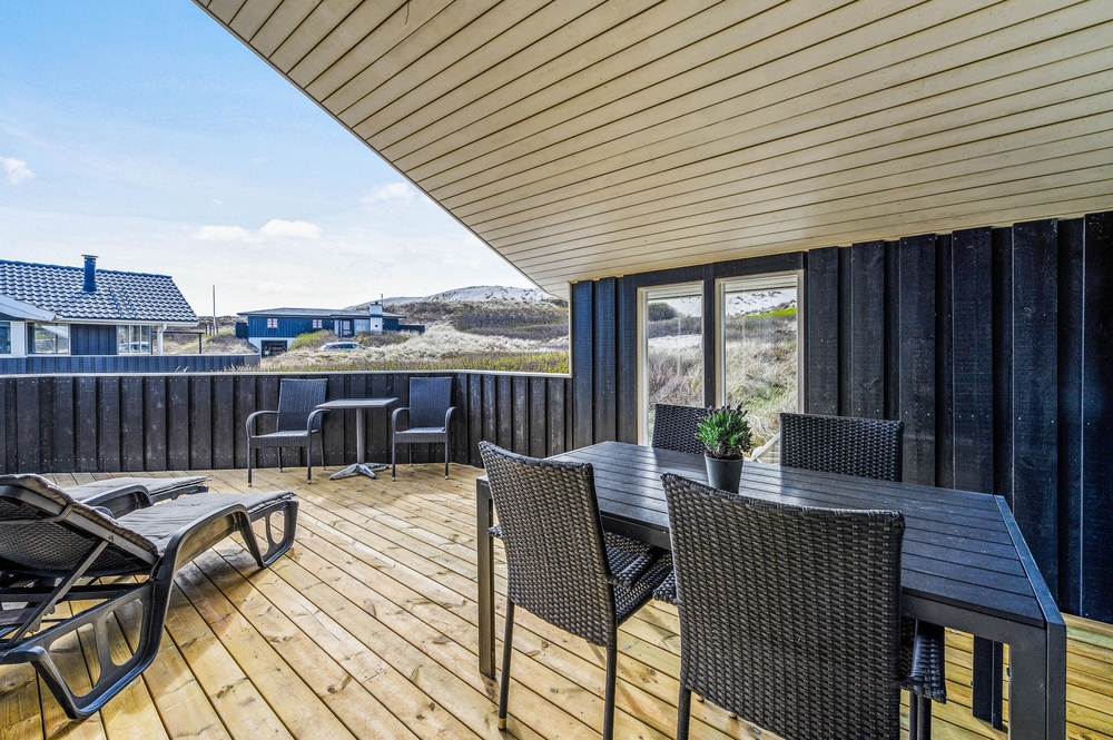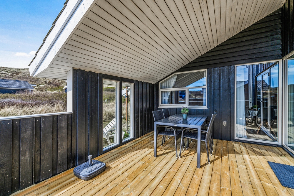 Möchtet Ihr ein Ferienhaus, von dem Ihr den Strand innerhalb von 2 Minuten erreicht und wo die Natur und die Aussicht einzigartig sind, dann habt Ihr hier genau das richtige gefunden. Das Haus steht auf einem Naturgrundstück und von der abgeschirmten und teilweise überdachten Terrasse habt Ihr eine herrliche Aussicht über die Dünenlandschaft.