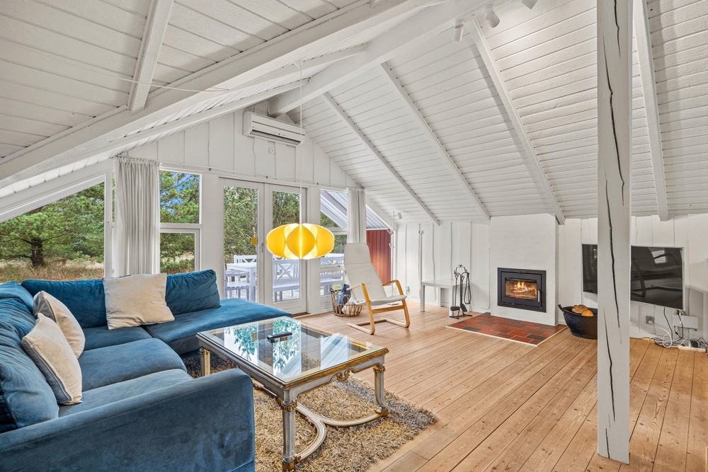 Das Haus entspricht voll und ganz einem traditionellen, dänischem Ferienhaus. Die hohen, offenen Decken mit den sichtbaren Holzbalken sowie die Vertäfelung strahlen so viel Gemütlichkeit aus. Wenn ihr dann noch entspannt mit einem Buch auf der Couch sitzt, das Feuer im Kamin knistert und euer Liebster euch einen warmen Kakao oder frisch aufgebrühten Kaffee reicht, ist wirklich Urlaub angesagt.
