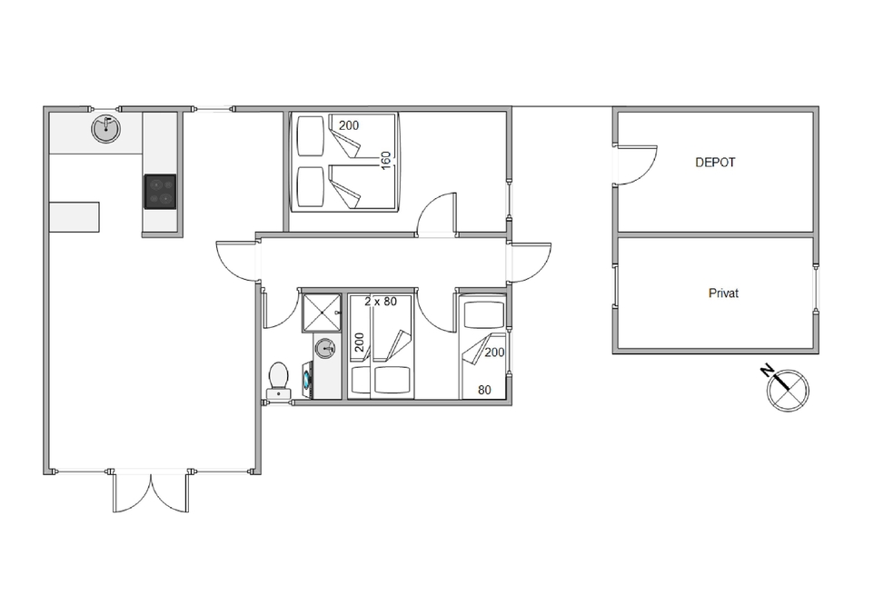 Der größte Raum besteht aus dem Wohnzimmer mit dem Kamin, einem schönen Essbereich und der in den Raum integrierten Küche. Urlaub in einem dänischen Ferienhaus bedeutet, Zeit für die Familie zu haben und so viel wie möglich gemeinsam zu machen. Der Koch hat also immer einen Helfer parat oder wird während der Zubereitung der Familienmahlzeit, unterhalten.
