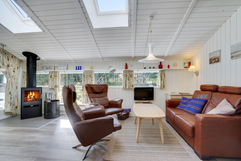 Im Kirkeflod 19 bekommt ihr ein Ferienhaus mit Wohlfühlfaktor. Der Kaminoffen im Wohnzimmer sorgt für eine gemütliche Urlaubsatmosphäre.