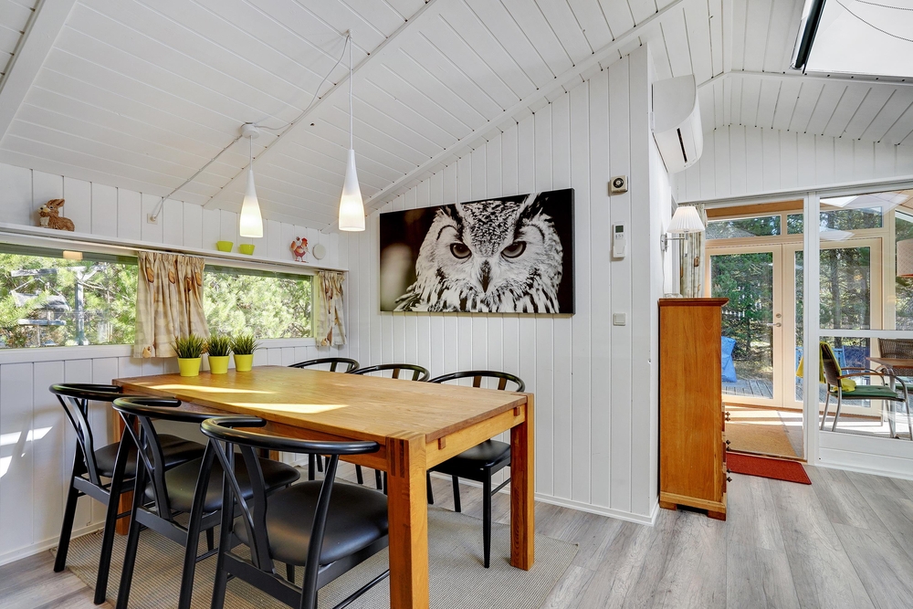 In der Nähe der wunderschönen Blåbjerg Plantage liegt dieses gemütliche Ferienhaus. Das Sommerhaus bietet Platz für 6 Personen und befindet sich auf einem schönen, ungestörten Naturgrundstück. Es gibt eine große Terrasse, die komplett sowie ein Teil des Gartens eingezäunt ist, was es ideal für Hundebesitzer und Familien mit kleinen Kindern macht. Verbringt einen schönen und ungestörten Urlaub in der herrlichen Landschaft und genießt Entspannung, Zweisamkeit und Naturerlebnisse.