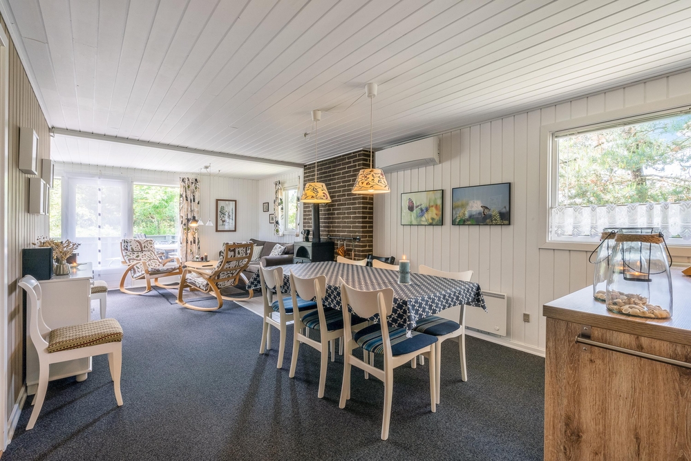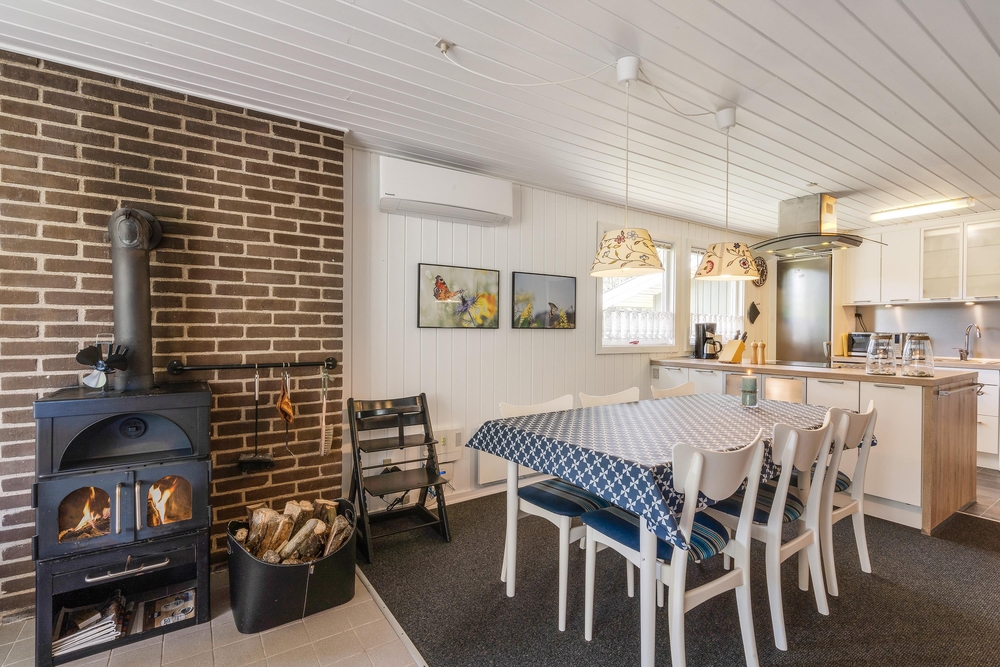 Ihr werdet sobald ihr das Haus betretet merken, dass hier viel Wert auf die Gemütlichkeit und eine persönliche Einrichtung gelegt wurde. Die vielen Fenster sorgen für viel Licht, sodass die Räume noch größer und freundlicher wirken. Die sehr schöne offene Küche lädt zum gemeinsamen Kochen ein. In der Wohnstube sorgen ein kuscheliges Sofa und der Bollerofen für gemütliche Stimmung.