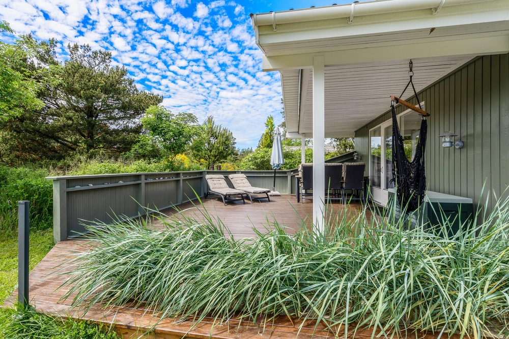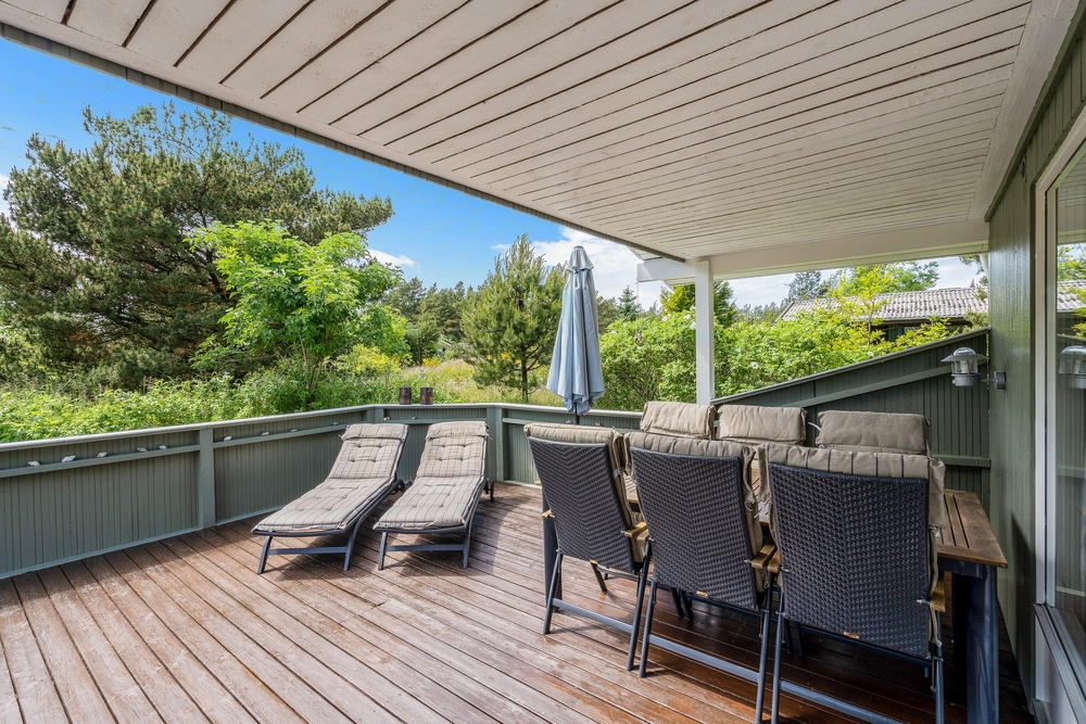 Von der Wohnstube könnt ihr auf die schöne Terrasse, wo ihr euch auf die Sonnenliegen entspannen könnt. Hier ist immer einen schönen Sonnen- oder auch Schattenecke.