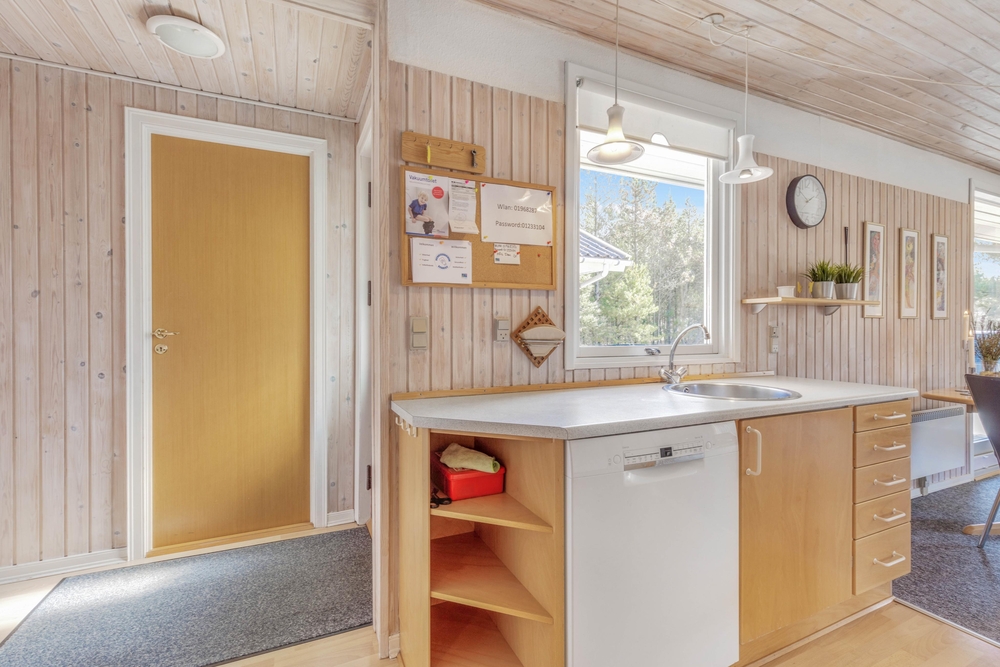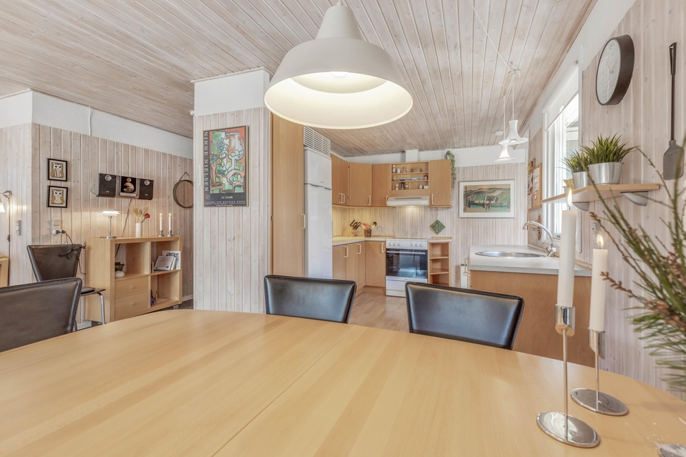 Dieses ebenerdige Ferienhaus liegt am Rande eines Ferienhausgebietes in Houstrup, im Kirkeflod 98 und dienst als guter Ausgangspunkt für einen Urlaub im Grünen. Die mit hellem Holz verkleideten Räumlichkeiten strahlen zugleich Ruhe als auch eine entspannet Atmosphäre aus. Naturliebhaber werden sich hier wirklich wohlfühlen.
