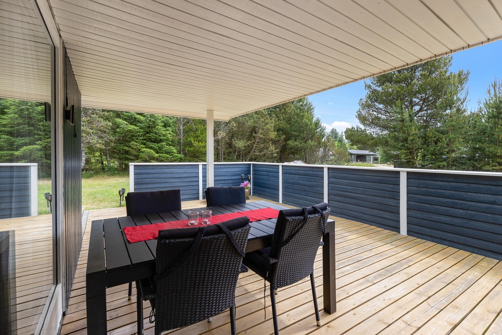 Das Ferienhaus liegt auf einem großen, offenem und dennoch von Bäumen und Büschen geschütztem Grundstück. Die geschlossene, teilweise überdachte Terrasse lädt zum Sonnenbaden aber auch an bewölkten Tagen zu entspannten Stunden an der frischen Luft ein. Kuschelt euch in eine Decke und genießt bei einer Tasse frischen Kaffees entweder ein spannendes Buch oder lasst euren Gedanken freien Lauf und lauscht einfach nur dem Gezwitscher der Vögel.