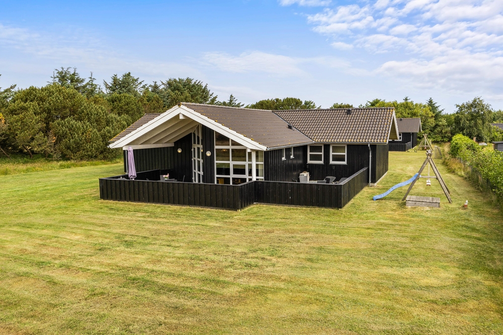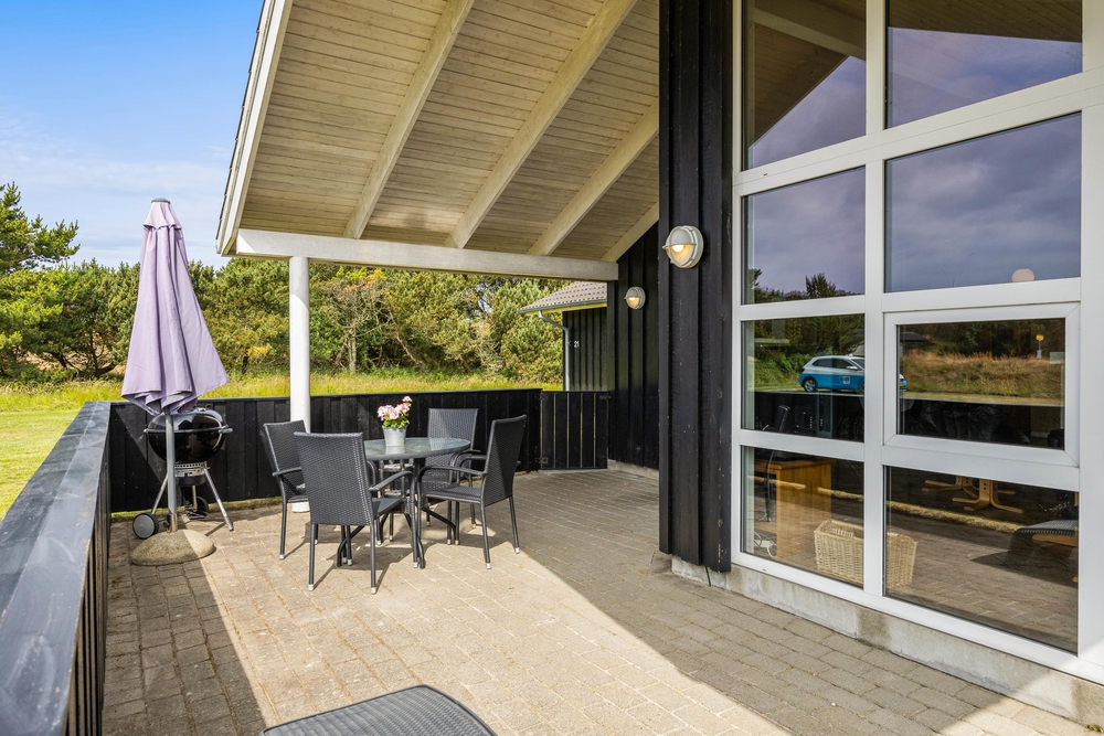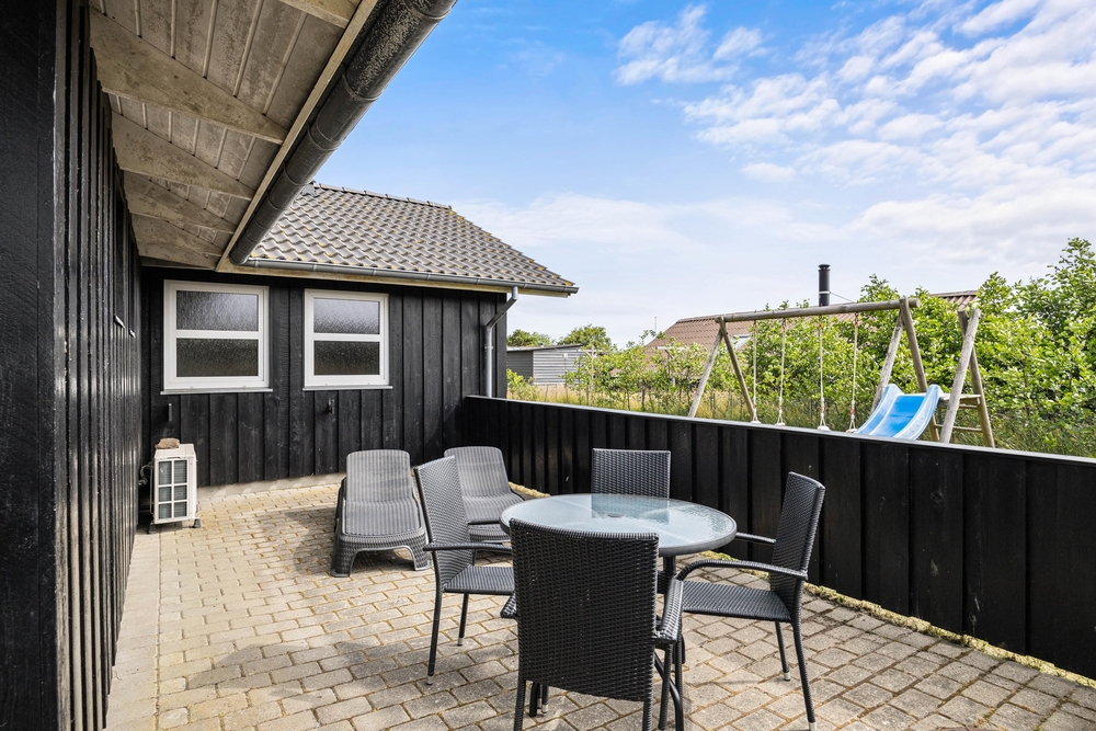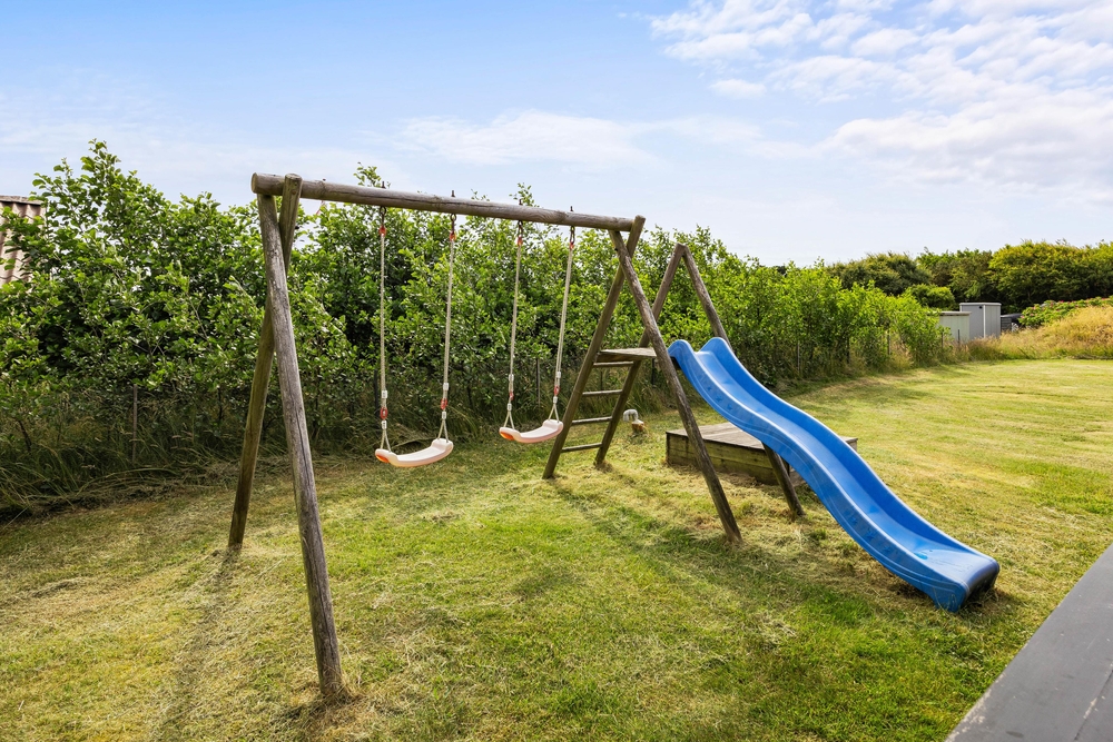Die Terrasse des Ferienhauses ist sowohl überdacht als auch teilweise überdacht, so dass es viele Möglichkeiten gibt, einen Platz in der Sonne, oder im Schatten zu finden, je nach Bedarf. Hier könnt ihr euch zurücklehnen und das Zwitschern der Vögel und die salzige Meeresluft genießen, während die Kinder auf dem großen Rasen herumtollen, der zu Ballspielen einlädt. Außerdem gibt es einen Sandkasten und eine Schaukel für die Kleinen.