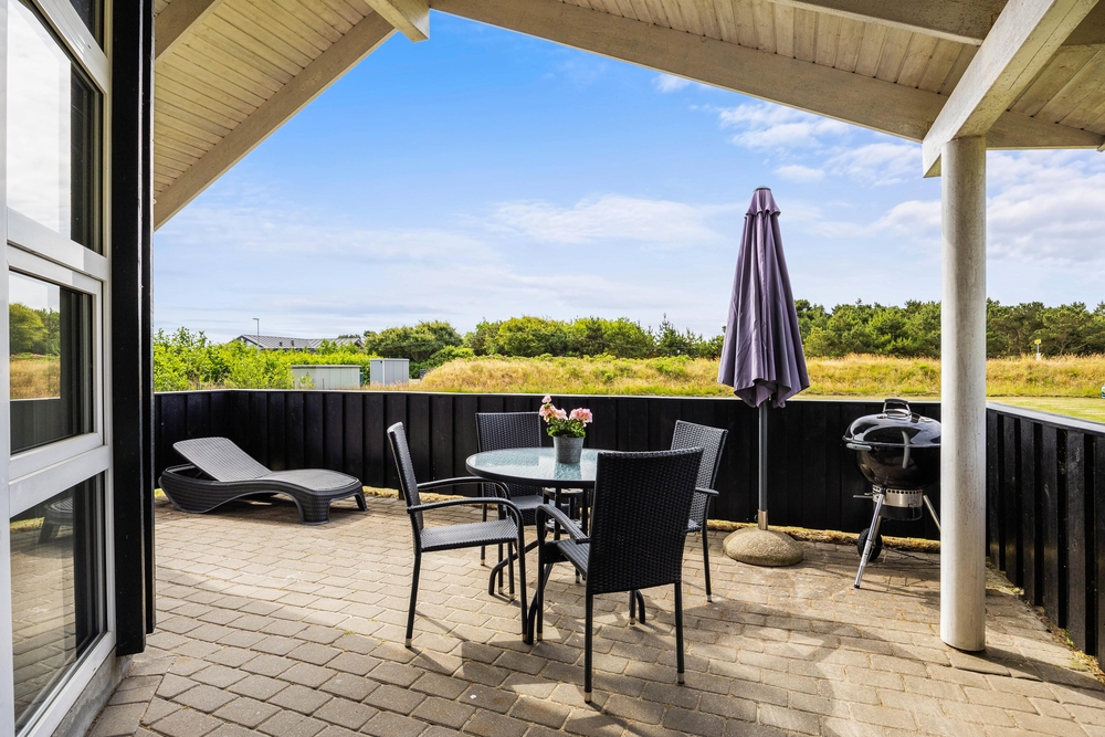 Zusätzlich zu den Gartenmöbeln ist die Terrasse mit Sonnenschirmen und Liegen ausgestattet, so dass ihr euren Urlaub an sonnigen Tagen richtig genießen könnt. Es gibt auch einen Grill im Ferienhaus. So könnt ihr lokale Köstlichkeiten, die ihr auf der Insel bekommt, genießen.