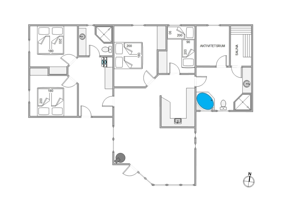 Das Ferienhaus ist mit 4 Schlafzimmern ausgestattet, wovon eines mit 2 Einzelbetten und die anderen mit Doppelbetten ausgestattet sind. Hier könnt ihr euch zurückziehen und einen guten Schlaf genießen, um neue Energie für den nächsten Urlaubstag zu tanken. Außerdem verfügt das Ferienhaus über 2 Bäder mit Dusche und Fußbodenheizung, eines davon auch mit Whirlpool und Sauna ? Wellness pur für Körper und Seele.