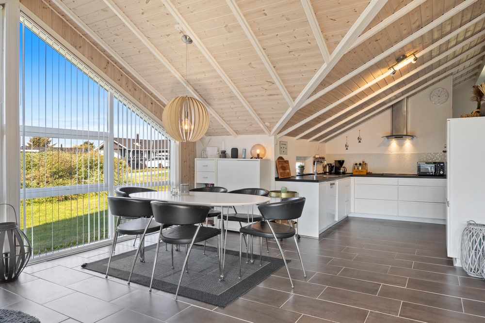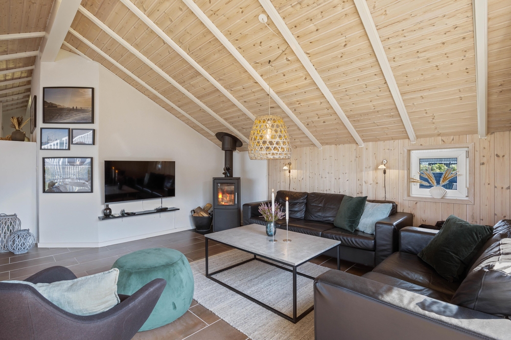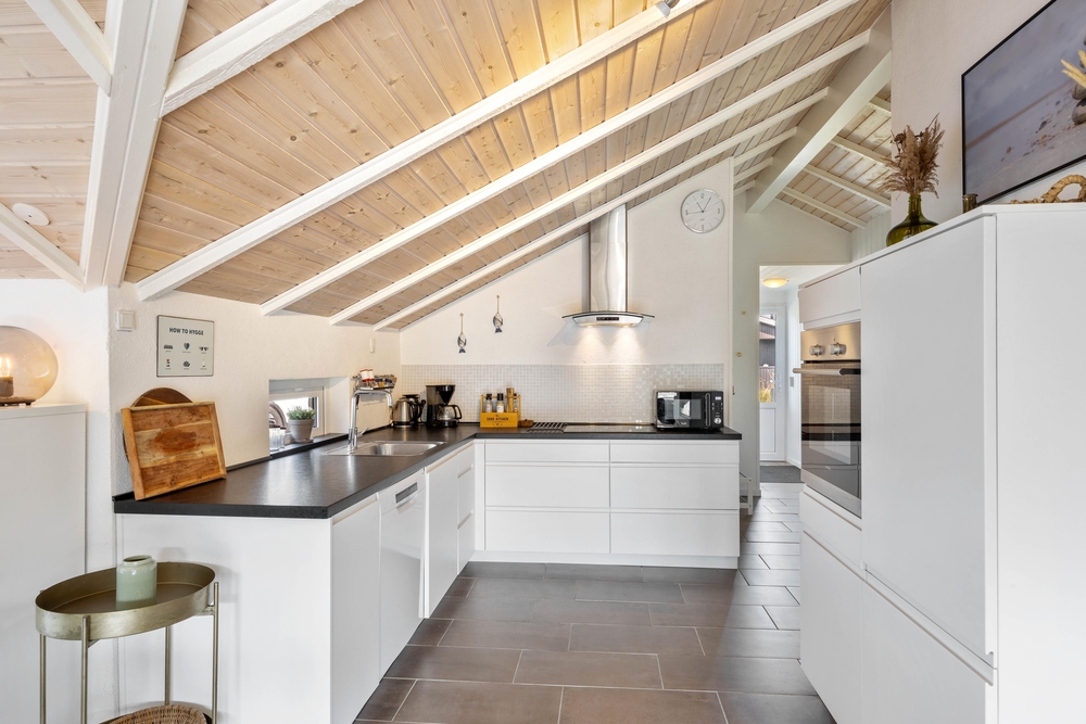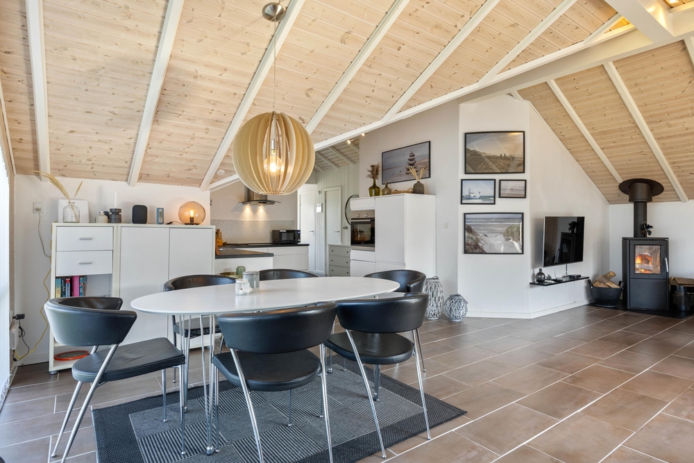 Das Ferienhaus bietet euch einen großzügigen und einladenden Küchen- und Wohnbereich, der viel Platz für die ganze Familie bereithält. Die offene Gestaltung ermöglicht es euch, auch beim Kochen am Familienleben teilzuhaben. Nach einem leckeren Essen könnt ihr euch entspannt zurücklehnen, während der Geschirrspüler den Abwasch für euch übernimmt. Macht es euch anschließend vor dem gemütlichen Kaminofen bequem, spielt mit euren Kindern oder genießt die helle und freundliche Atmosphäre, die durch die große Fensterfront in den Raum gezaubert wird.