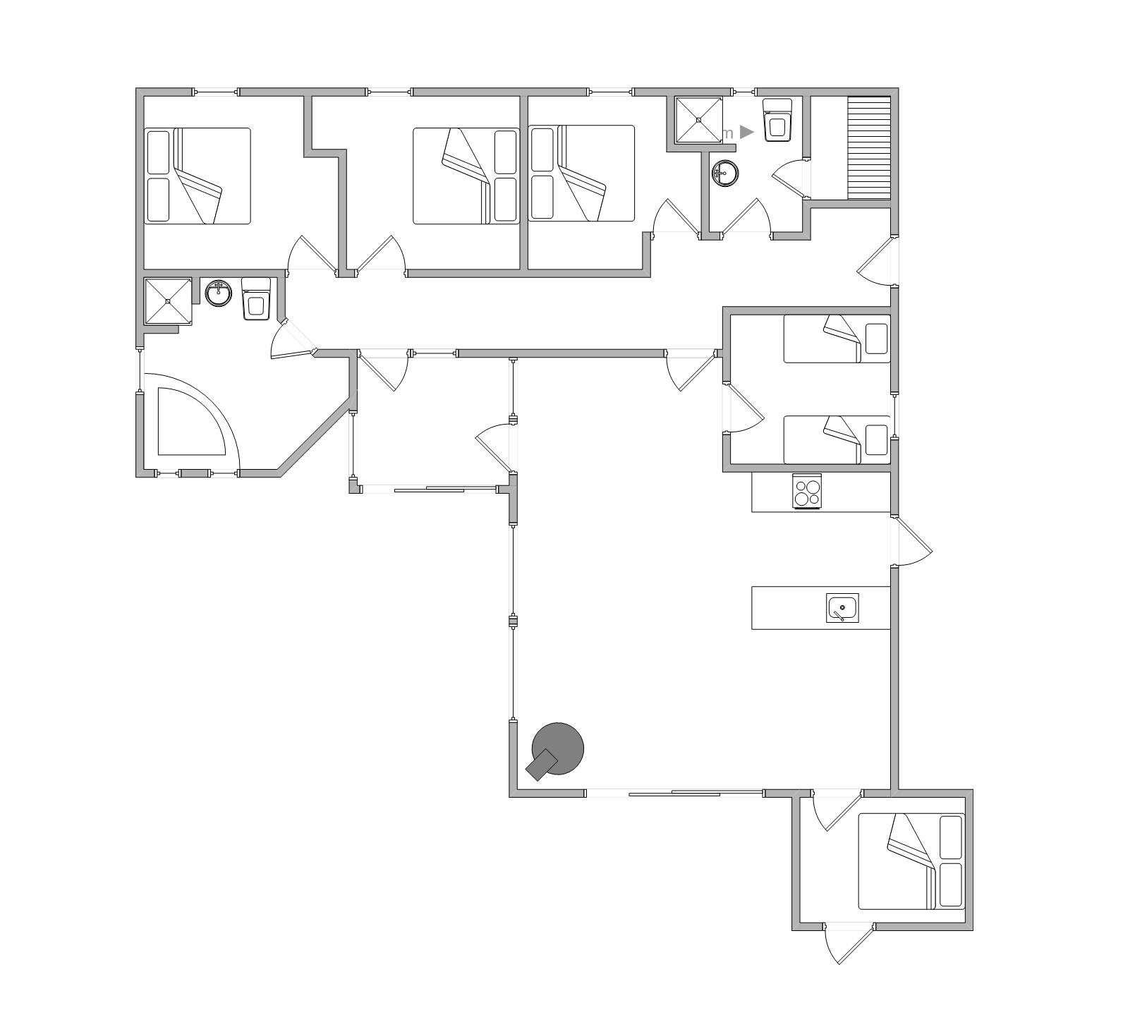 Bei eurem Feriendomizil handelt es sich um ein gepflegtes und gut ausgestattetes Ferienhaus mit 5 Schlafräumen (4 mit Doppelbetten und eines mit 2 Einzelbetten). Die moderne Küche bietet unter anderem eine Mikrowelle und eine Spülmaschine. Der Küchenbereich ist mit dem gemütlich eingerichteten Wohnzimmer, dem großen Essbereich und 2 gemütlichen Sitzgruppen offen verbunden. Hier findet ihr einen rustikalen Kamin, der für Gemütlichkeit sorgt, einen Flachbildschirm-TV mit Parabolantenne sowie DVD-Spieler und CD-Radio vor.