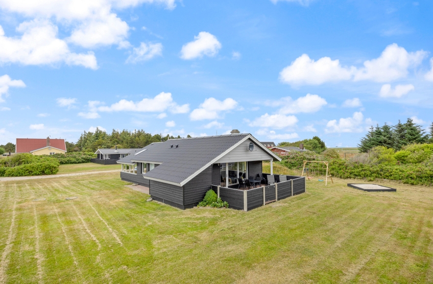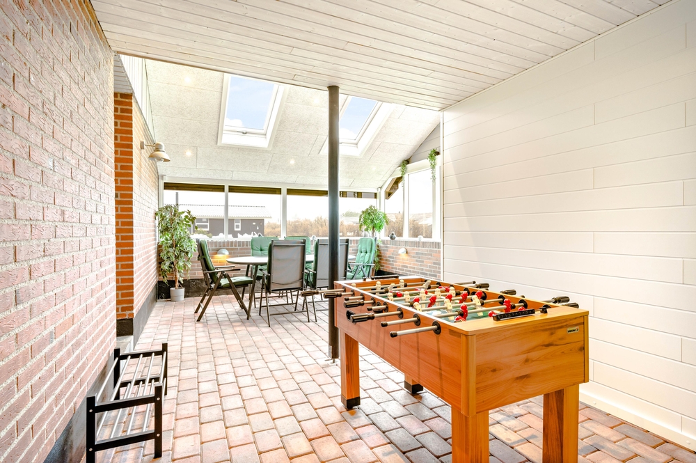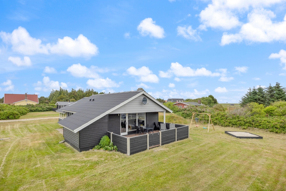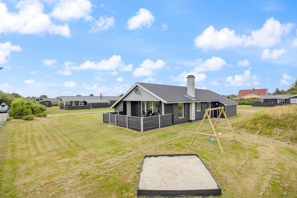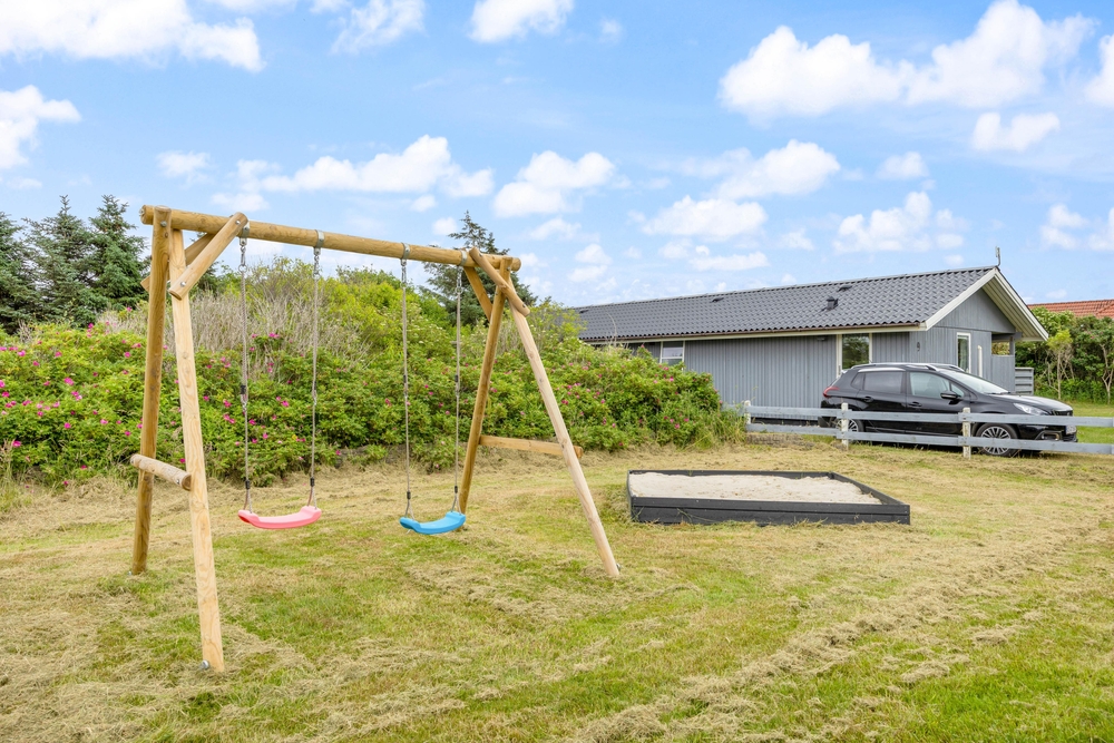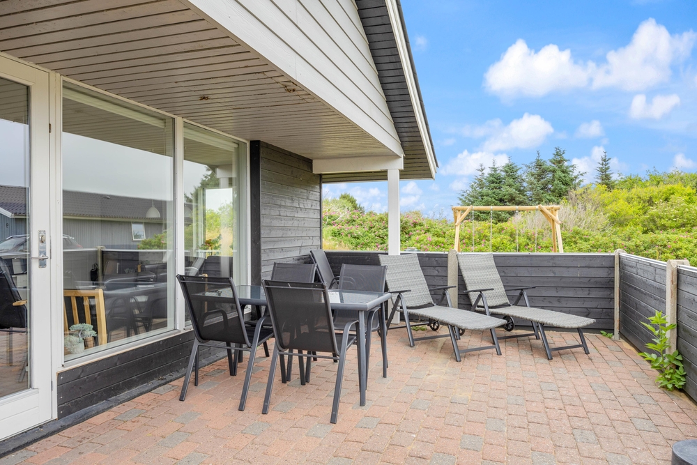 Rund um das typisch dänische Ferienhaus findest du, für jedes Wetter passend, eine schöne Ecke zum Entspannen. Sei es die teilweise überdachte, geschlossene Südterrasse, der Wintergarten oder eine der kleinen Sitzecken. Hier kannst du deinen Kindern beim Spielen im Sandkasten oder Schaukeln zuschauen oder einfach nur die Seele baumeln lassen. Für schöne Stunden draußen, sorgen gemütliche Gartenmöbel und auch ein Grill darf natürlich nicht fehlen.