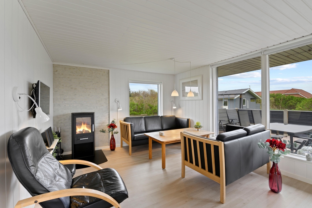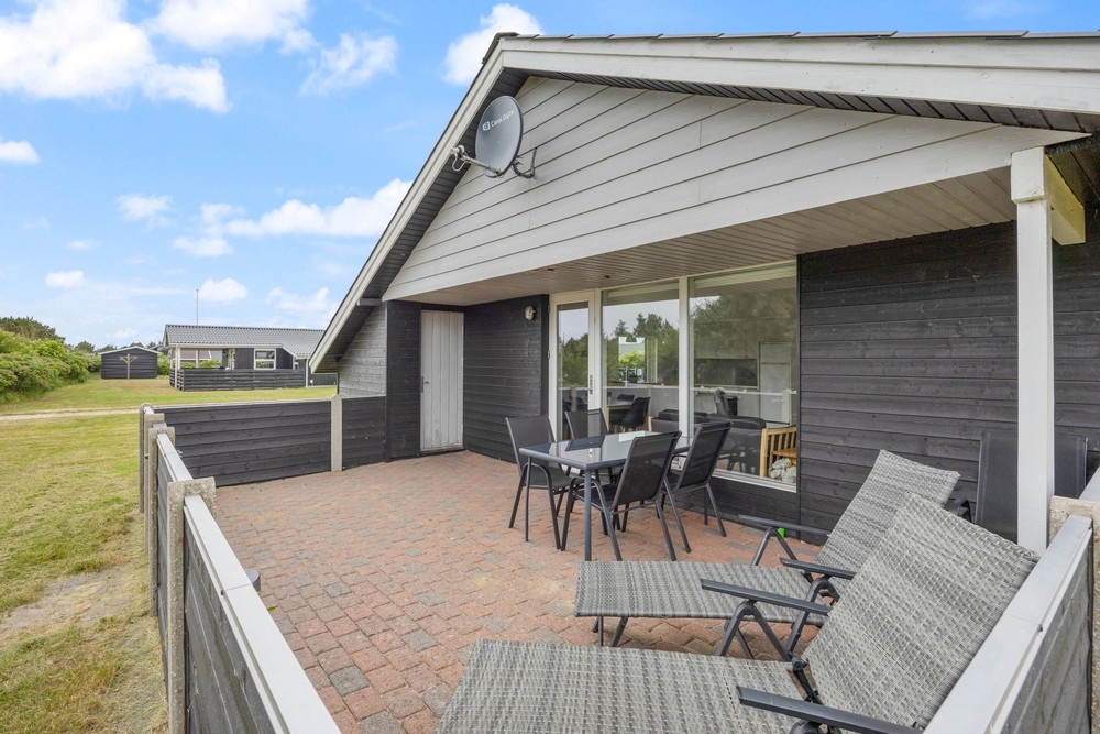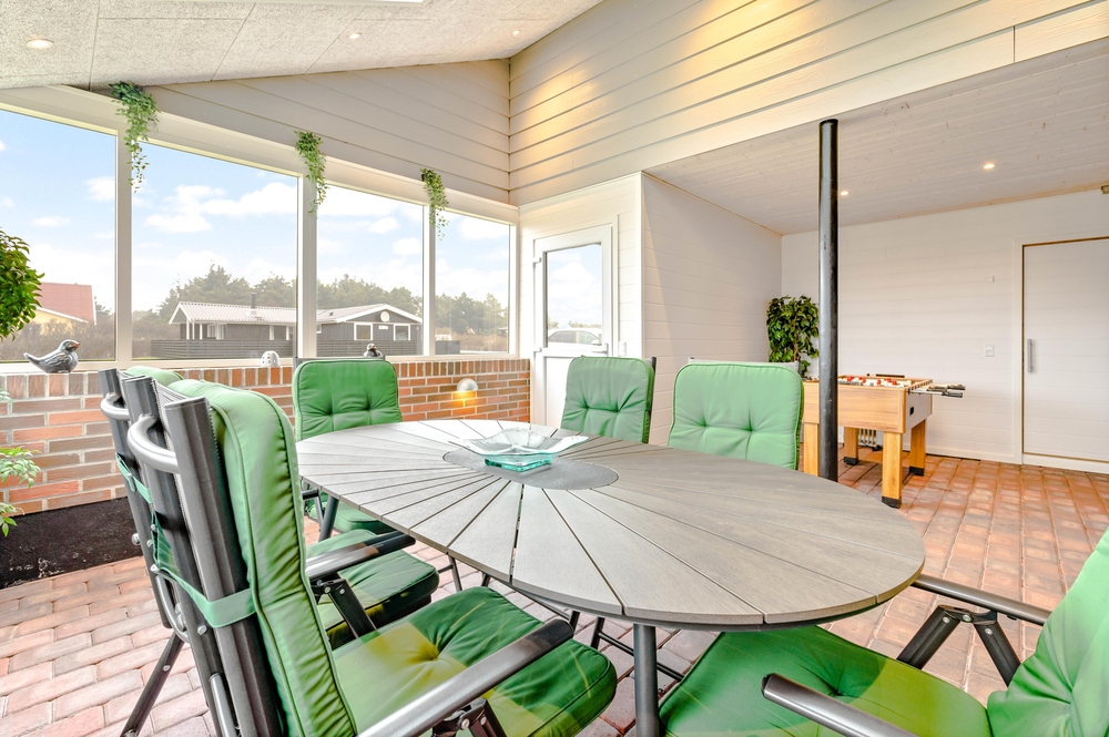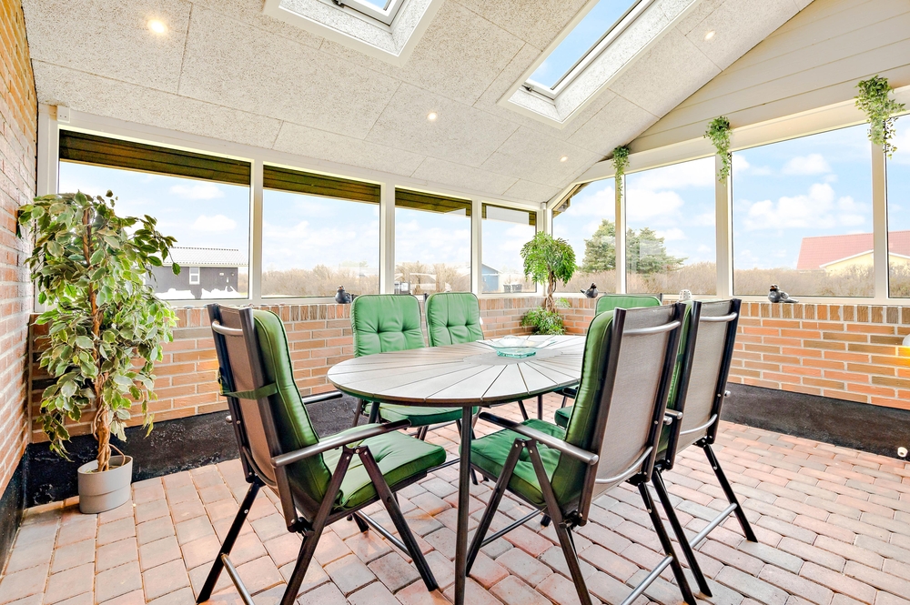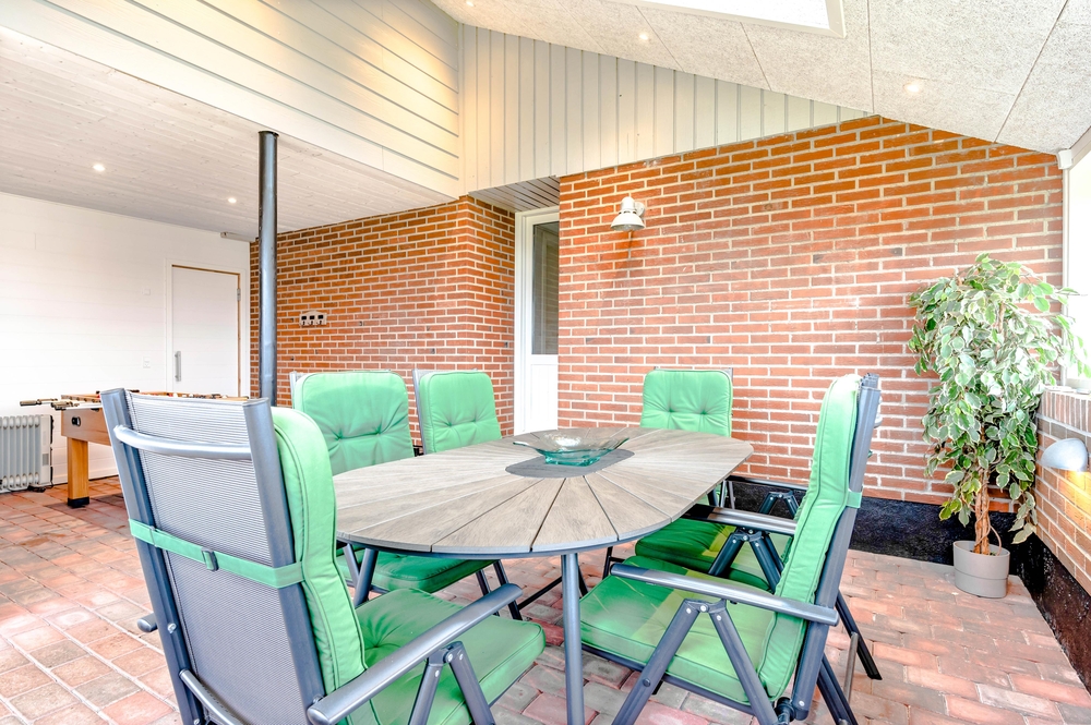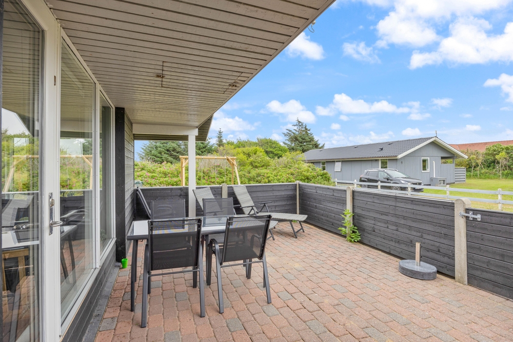 Rund um das typisch dänische Ferienhaus findest du, für jedes Wetter passend, eine schöne Ecke zum Entspannen. Sei es die teilweise überdachte, geschlossene Südterrasse, der Wintergarten oder eine der kleinen Sitzecken. Hier kannst du deinen Kindern beim Spielen im Sandkasten oder Schaukeln zuschauen oder einfach nur die Seele baumeln lassen. Für schöne Stunden draußen, sorgen gemütliche Gartenmöbel und auch ein Grill darf natürlich nicht fehlen.