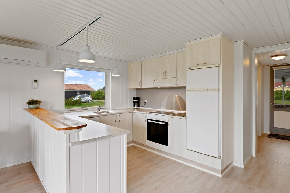 Das klassische Ferienhaus im Kirksvej 7 bietet viele tolle Annehmlichkeiten, die zu einem gelungenen Urlaub beitragen. Der große und helle Wohnbereich mit offener Küche und Essecke bietet viel Platz für einen schönen Abend vor dem Kamin oder für einen Spieleabend mit der Familie. In der Küche findest du natürlich einen Geschirrspüler und auch eine Waschmaschine sowie ein Trockner sind in dem Ferienhaus vorhanden.