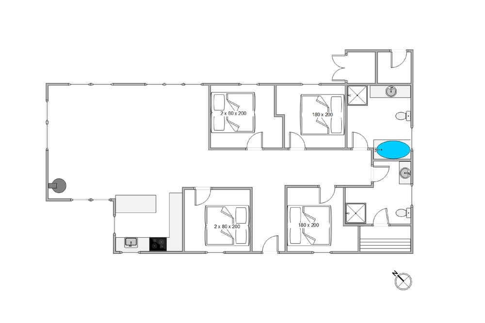 Im Ferienhaus finden sich viele schicke und gute Details, die dein Ferienerlebnis vollenden. So sind natürlich 4 schöne Schlafzimmer und 2 tolle Badezimmer vorhanden und bieten so guten Platz für bis zu 8 Personen. Darüber hinaus lädt die schicke Küche und das gemütliche Wohnzimmer zum Zusammensein mit der Familie und Freunden, z.B. beim gemeinsamen Zubereiten der Mahlzeiten, ein.