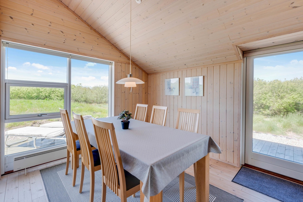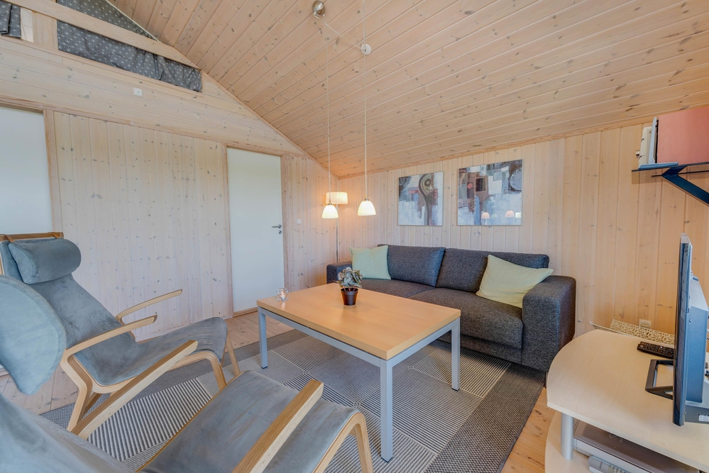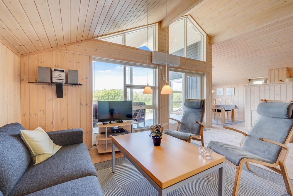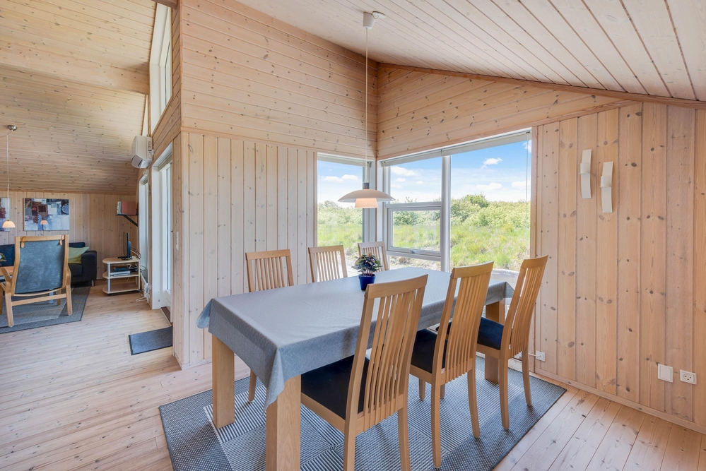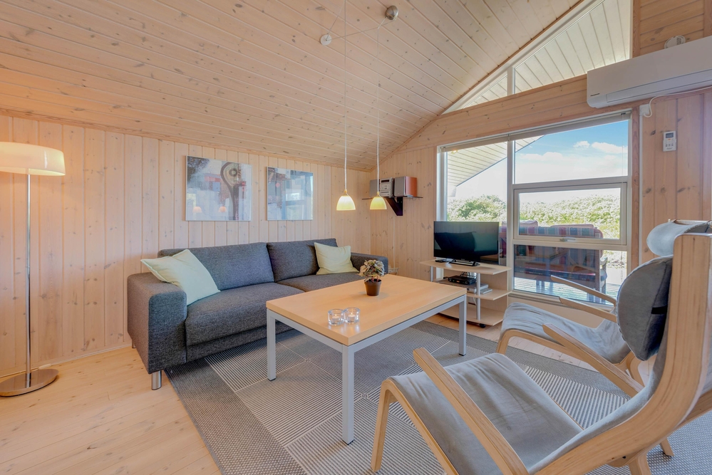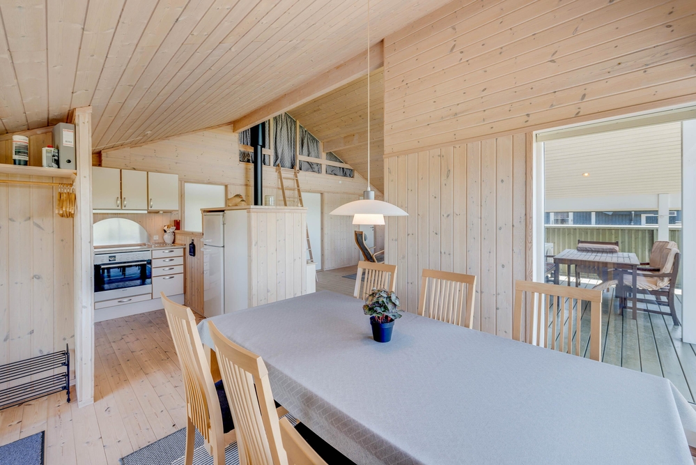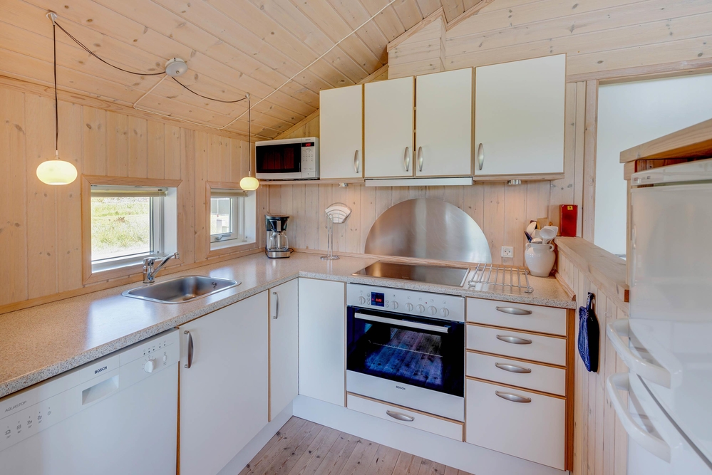 Das Ferienhaus empfängt euch mit dem klassischen dänischen offenen Wohnkonzept, der Küche, dem Wohn und Essbereich. Die Küche ist gut ausgestattet, einschließlich einer Spülmaschine und lädt dazu ein gemeinsam zu kochen. Wenn der Abend hereinbricht, könnt ihr es euch vor dem knisternden Kaminofen gemütlich machen. Eine energiesparende Wärmepumpe sorgt für eine angenehme und konstante Raumtemperatur im Wohnbereich.