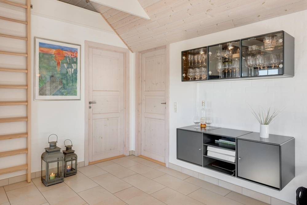 Die gut durchdachte und geschmackvoll aufeinander abgestimmte Ausstattung lässt keine Wünsche offen. In der modernen und gut ausgestatteten Küche werden koch begeistere Urlauber geradezu animiert, neue und leckere Gerichte auszuprobieren, um ihre Liebsten zu verwöhnen. Im Ferienhaus gibt es insgesamt 2 Kühlschränke mit integriertem Gefrierschrank. Einen der beiden Kühlschränke findet ihr in der Küche und den anderen im Abstellraum.