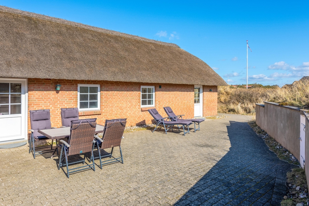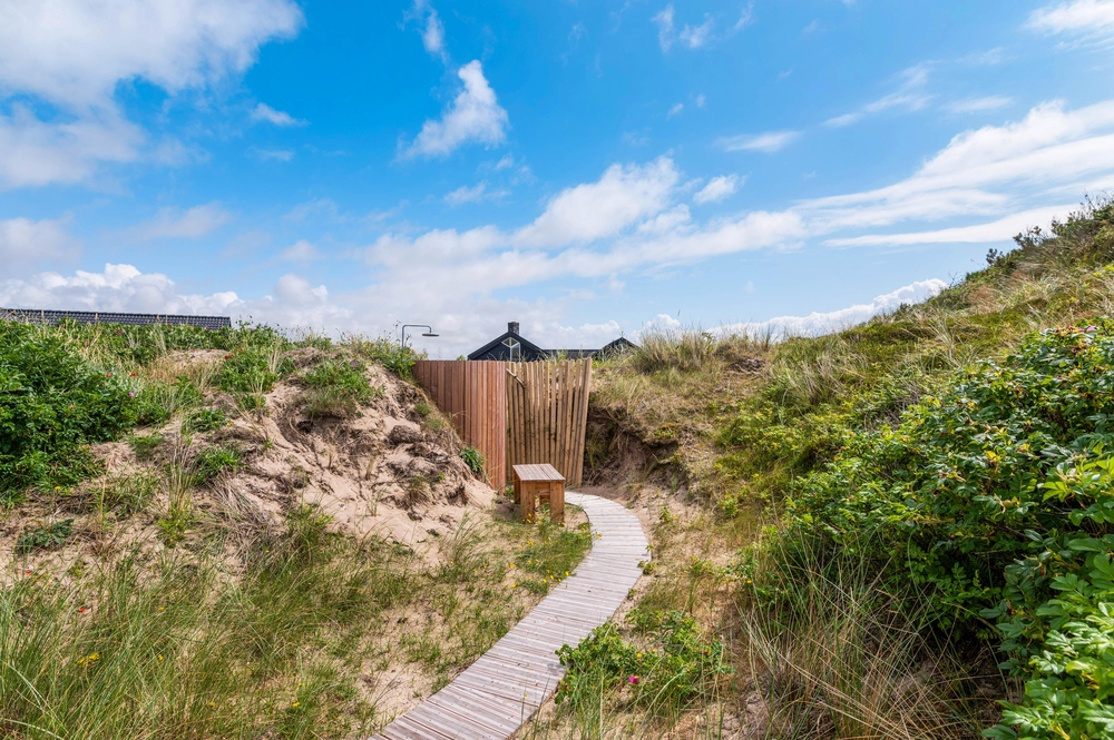 Unmittelbar von der Terrasse führt ein kleiner Pfad durch die angrenzende Dünenlandschaft direkt bis zum nur knapp 200 Meter entfernt liegendem Strand. Von der Dünenspitze habt ihr einen tollen Ausblick auf die umliegende, herrliche Natur. Im Frühling und Sommer zwitschern die Lerchen und singen euch ihr Lied ? Idylle pur. Nach einem ausgiebigen Spaziergang am Strand, bietet euch die Aussendusche von April-November die Möglichkeit eure Füße vom Sand zu befreien, bevor ihr wieder ins Haus geht.