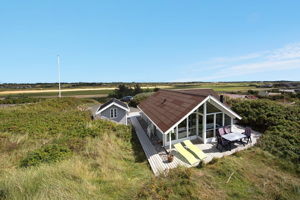 Hier habt Ihr ein charmantes und gepflegtes Ferienhaus in Houvig, das perfekt für eine kleinere Familie mit Hund ist. Auf der Westseite gibt es große Fenster, damit Ihr die Aussicht auf die Dünen und eines gutes Lichteinfall genießen könnt.