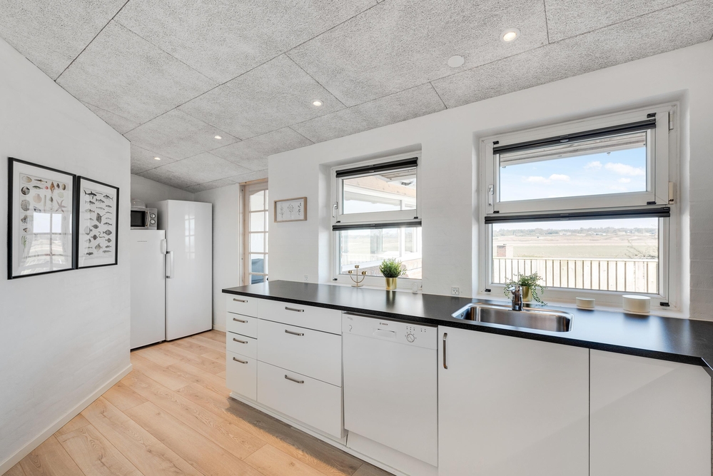 In sehr schöner Lage zwischen Meer und Fjord, oben auf einer Düne, liegt dieses Ferienhaus. Ein paar Kilometer nördlich von Sondervig liegt Klitdalen 7 mit fantastischer Aussicht in die Umgebung. Die Lage zwischen Meer und Fjord bietet zahlreiche Möglichkeiten für schöne Spaziergänge entlang der endlosen Strände oder auf den angelegten Wegen in die Heide.