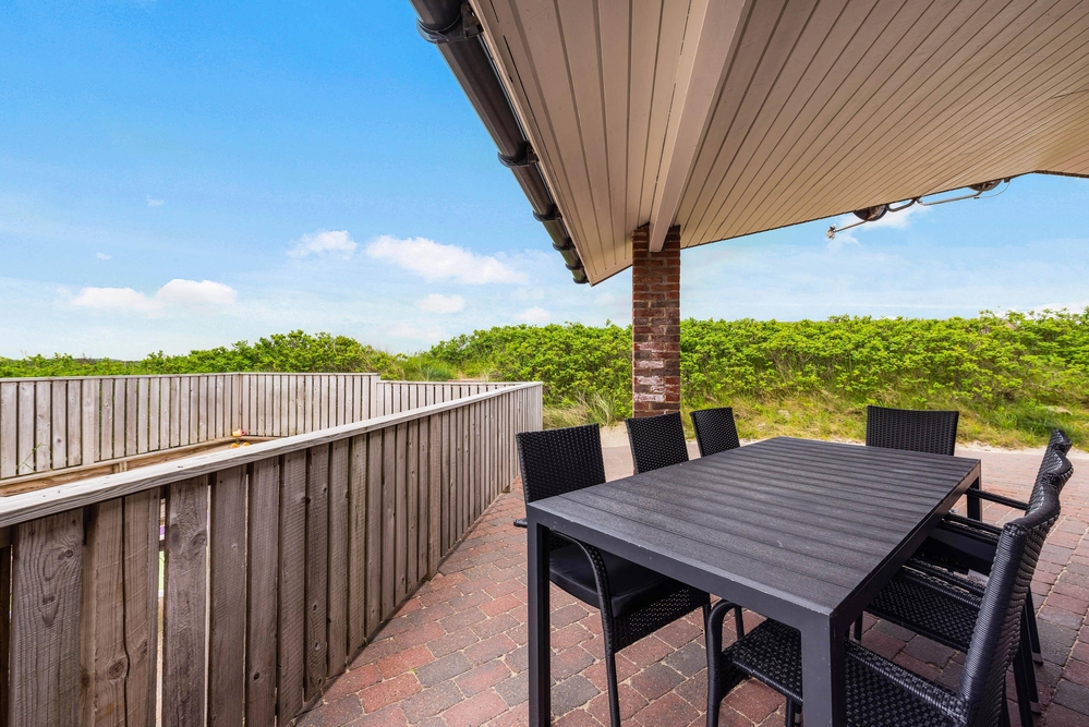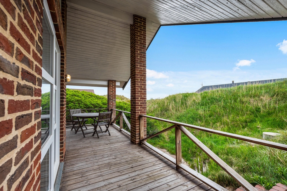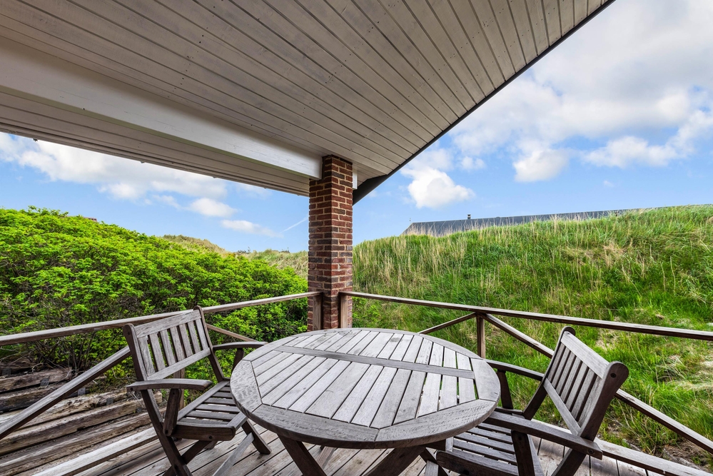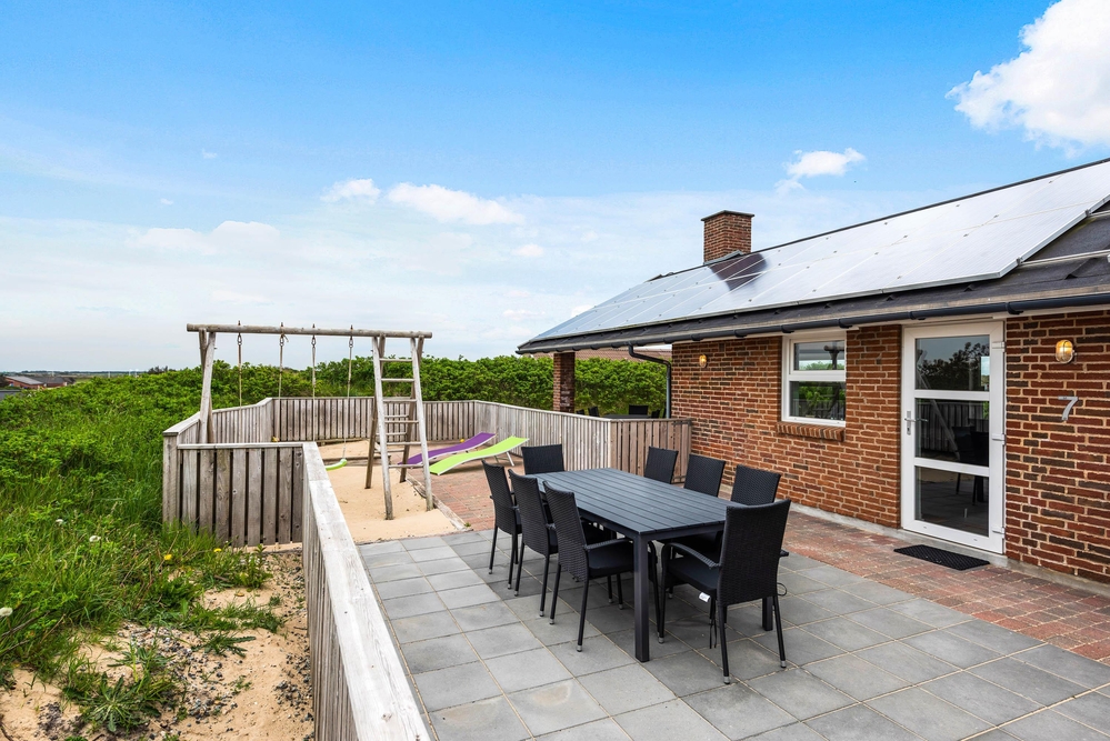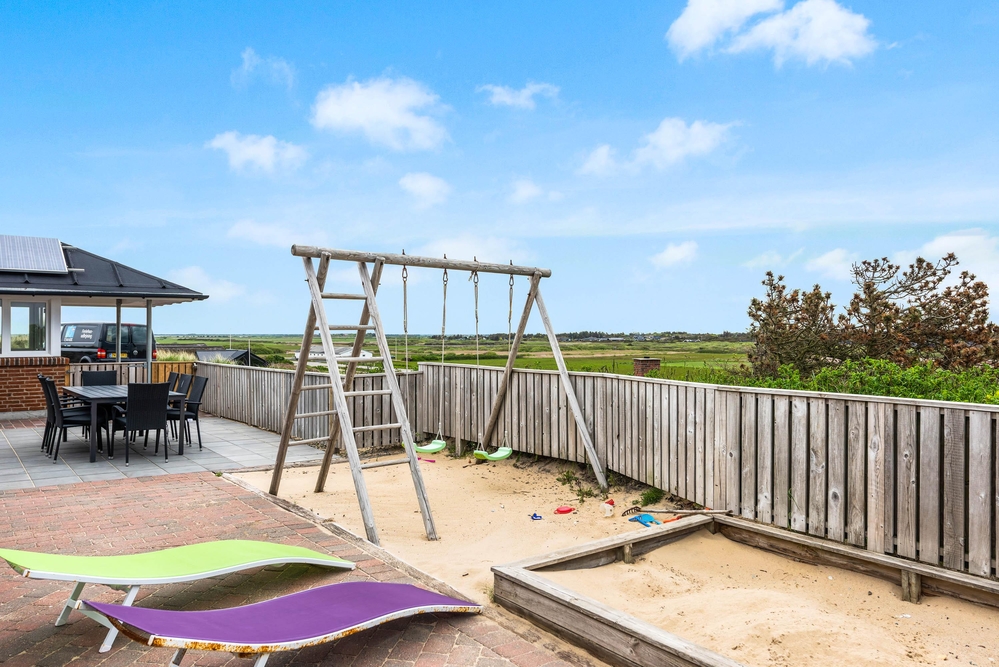 Das Haus liegt auf einem hügeligen Naturgrundstück mit einer schönen Aussicht. Zum Haus gehören mehrere Terrassen, sodass ihr so gut wie immer einen windgeschützten Platz finden werdet. Die Kleinsten dürfen sich auf der Schaukel und im Sandkasten vergnügen, die sich auf dem geschlossenen Teil der Terrasse befindet, während ihr die Nase in die Sonne haltet und entspannt. Genießt das Leben im Freien und spürt die frische Luft vom Meer, da dies nur ca. 450 m entfernt liegt. Eine Außendusche steht für euch von April-November zur Verfügung.
