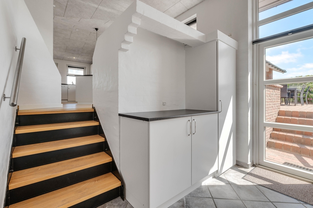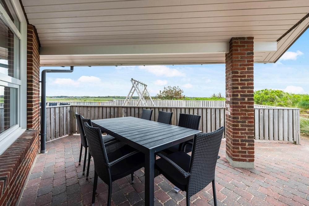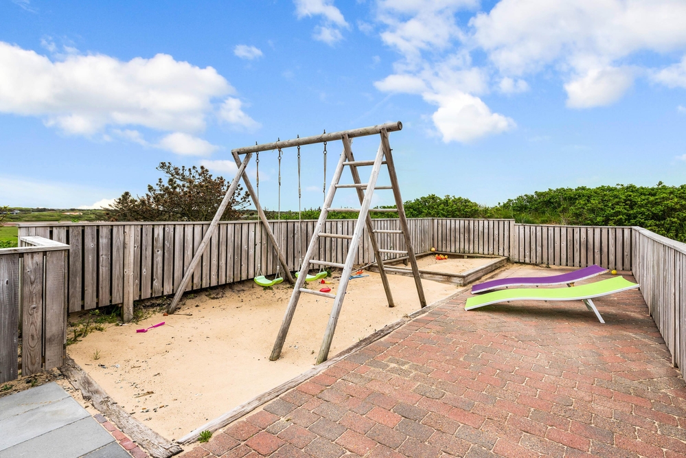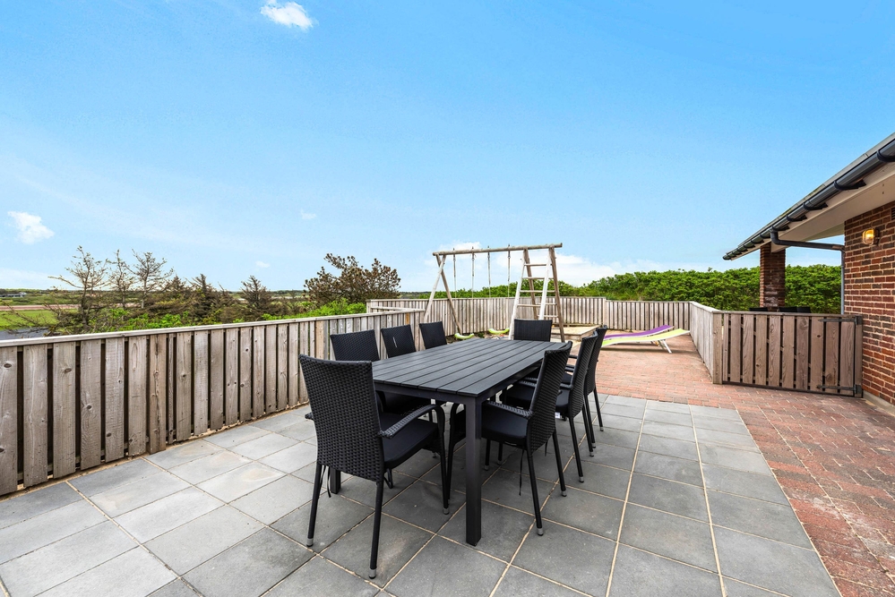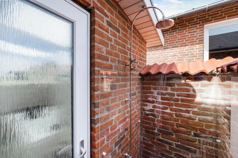 Das Haus liegt auf einem hügeligen Naturgrundstück mit einer schönen Aussicht. Zum Haus gehören mehrere Terrassen, sodass ihr so gut wie immer einen windgeschützten Platz finden werdet. Die Kleinsten dürfen sich auf der Schaukel und im Sandkasten vergnügen, die sich auf dem geschlossenen Teil der Terrasse befindet, während ihr die Nase in die Sonne haltet und entspannt. Genießt das Leben im Freien und spürt die frische Luft vom Meer, da dies nur ca. 450 m entfernt liegt. Eine Außendusche steht für euch von April-November zur Verfügung.
