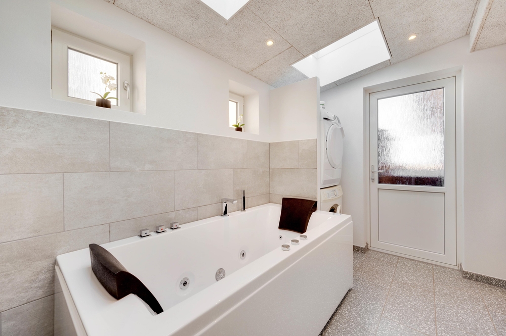 Für die großen und kleinen Spieler stehen Billard, Tischtennis und ein Fernseher in einem separaten Raum zur Verfügung, sodass die restlichen Gäste des Hauses nicht gestört werden, wenn diese stattdessen gemütlich die Beine hochlegen und ihre Lieblingssendung schauen möchten. Das Ferienhaus hat zwei Badezimmern, wovon eines über eine Sauna und einen Whirlpool verfügt. Hier könnt ihr ein bisschen Wellnessfeeling genießen.