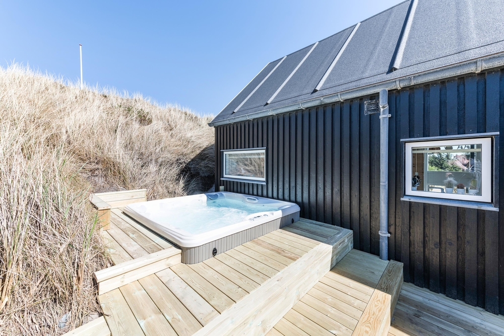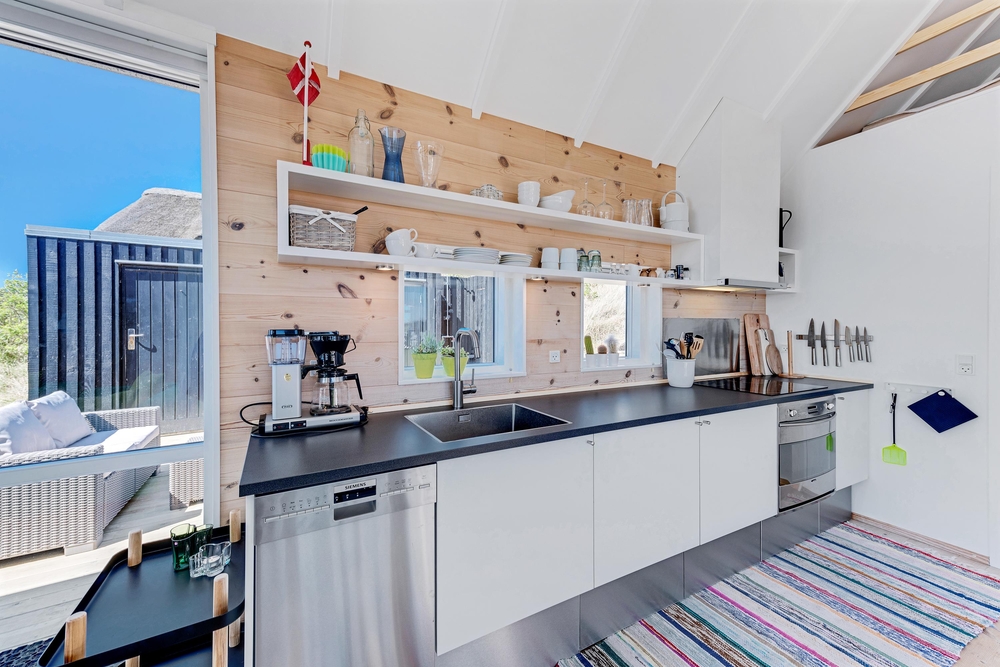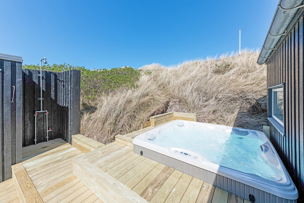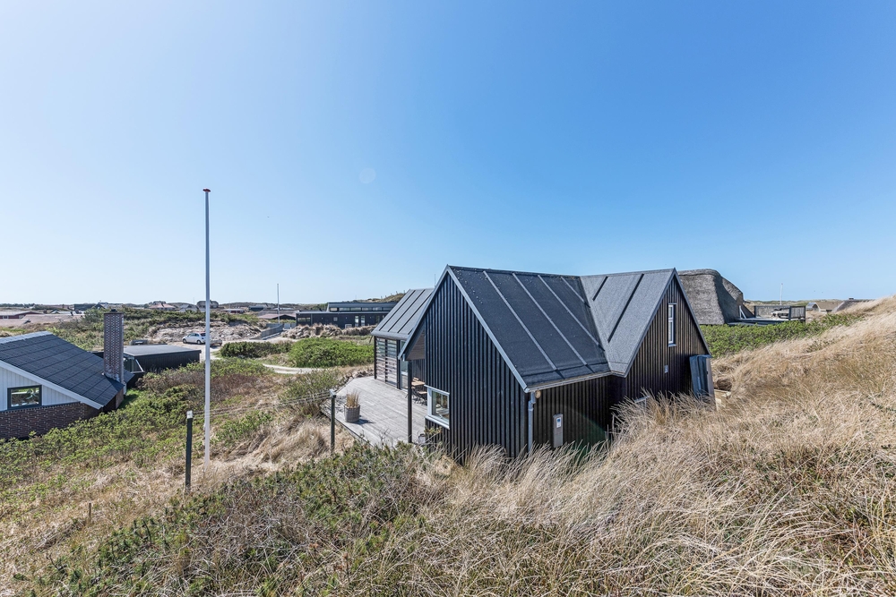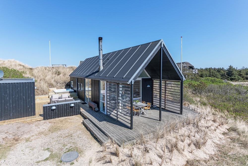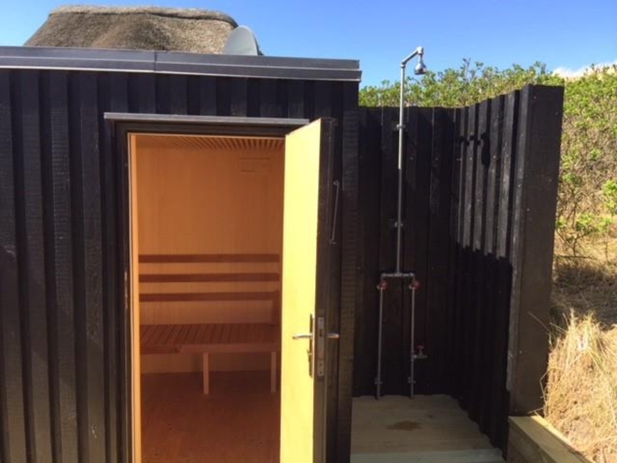 Vom Wohnraum aus habt ihr Zugang zur herrlichen, teilweise überdachten Terrasse, die sich um das ganze Haus schlängelt, sodass ihr dem Verlauf der Sonne folgen könnt. Beim Sonnenbaden könnt ihr das nahegelegene Meer rauschen hören und die schneeweißen Möwen am tiefblauen Himmel beobachten. Einen warmen Sommertag könnt ihr auf der tollen überdachten Terrasse mit gläsernem Windschutz bei einem gemütlichen Grillabend ausklingen lassen, während im Westen die Sonne hinter den Dünen untergeht.