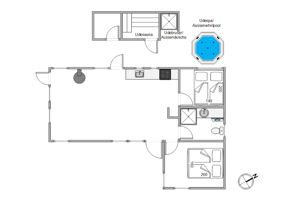 Ein Highlight dieses tollen Hauses ist sicherlich der Außenwhirlpool. Genießt das warme Wasser, lehnt euch zurück und schaut in den blauen Himmel oder zählt die Sterne am Nachthimmel. Ein Bad unter freiem Himmel ist erholsam und ein unvergessliches Erlebnis. Anschliessend könnt ihr die Wellnessbehandlung mit einem Saunagang in der Außensauna abrunden. Hier ist Erholung garantiert.