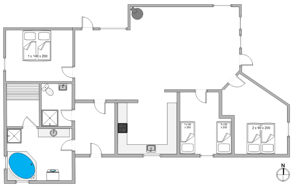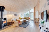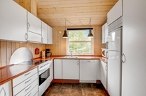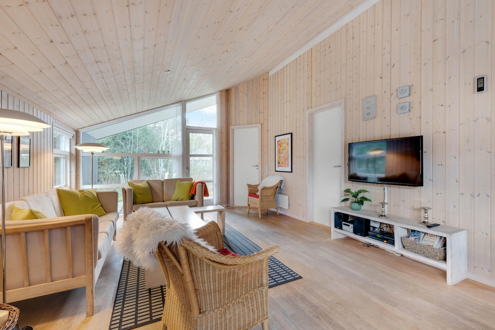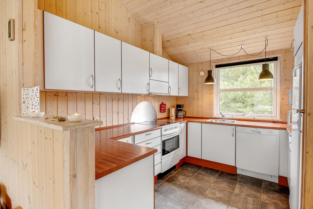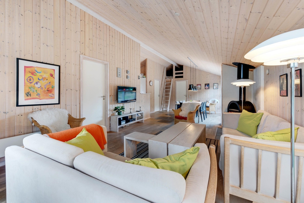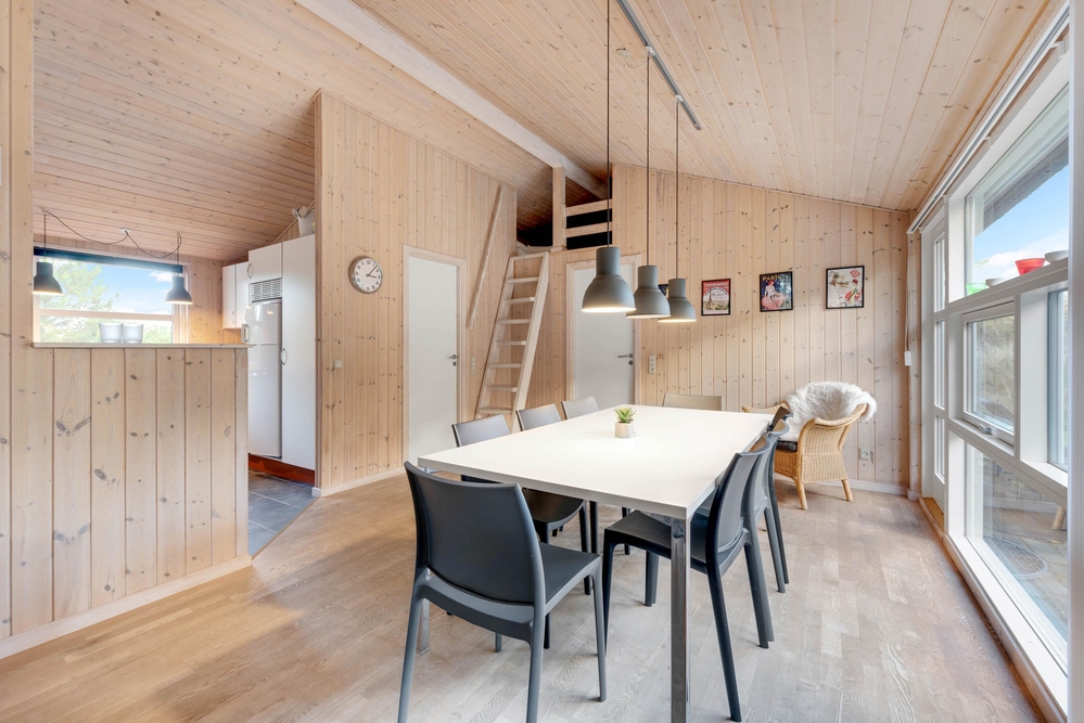 Das Ferienhaus hat eine gemütliche Einrichtung, die eine warme und gemütliche Ferienhausatmosphäre schafft. Die hellen Holzböden und die hohen Decken tragen zu dem charmanten Stil bei, und der offene Wohn- und Küchenbereich bietet viel Platz für geselliges Beisammensein und Gemütlichkeit. Die Essküche und das schöne Wohnzimmer mit Holzofen sind der Mittelpunkt in diesem charmanten Ferienhaus und bieten euch genügend Platz, die nächsten spannenden Aktivitäten für eure Urlaubstage zu planen. Die offene Küche ist modern eingerichtet und bietet alles, was ihr für die Zubereitung leckerer Mahlzeiten benötigt. Hier könnt ihr gemeinsam kochen und gleichzeitig mit der Familie oder mit Freunden im Wohnzimmer zusammensitzen.