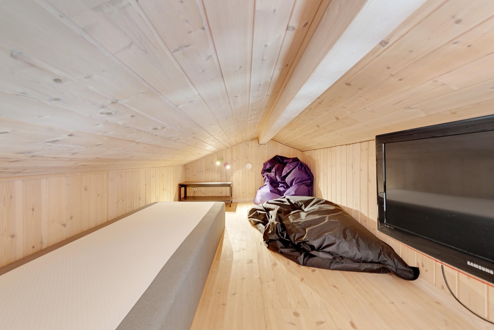 Schön ist auch, dass ihr an kühlen Abenden den Holzofen anmachen könnt, der für zusätzliche Wärme und die typische Ferienhausatmosphäre im Ferienhaus sorgt. Der Holzofen trägt sowohl zu einer gemütlichen Atmosphäre als auch zu einer sparsamen Wärmequelle bei, die man gemeinsam mit der Familie oder mit Freunden genießen kann. Auf dem Dachboden können sich die Kinder amüsieren, einen Film ansehen oder vielleicht eine Partie Karten spielen, während sie ein Auge auf die Aktivitäten der Erwachsenen haben.