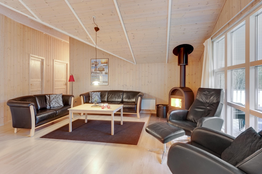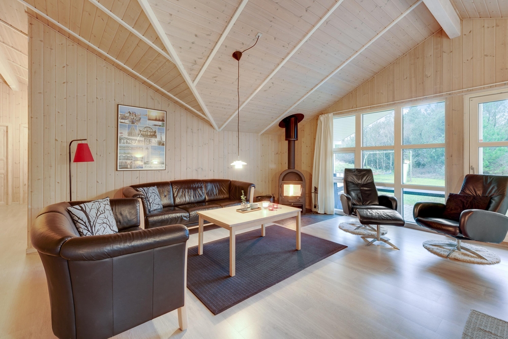 Die Sofaecke lädt zur totalen Entspannung ein ? möglicherweise mit einem guten Buch und einer Tasse Kaffee vor dem knisternden Feuer im Holzofen.