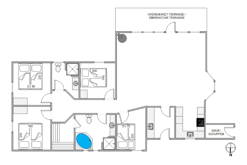 Die Nordsee ist nicht weit entfernt entfernt und die Stadt Søndervig mit vielen schönen Restaurants, Geschäften und Einkaufsmöglichkeiten ist auch in der Nähe.