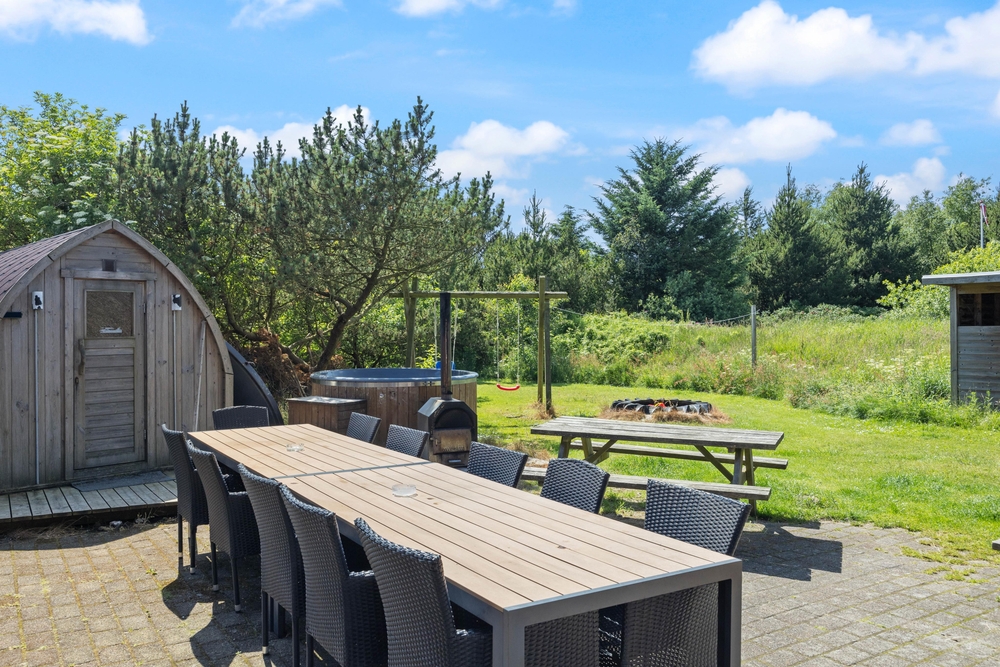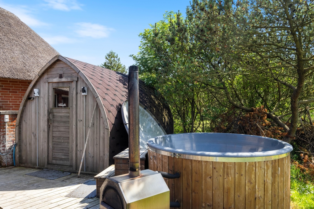 Das Ferienhaus liegt auf einem 2351 Quadratmeter großen Grundstück, sodass alle, ob eure Kinder oder eure Hunde viel Gelegenheit haben, sich auszutoben. Auf der offenen Terrasse könnt ihr euch in den Gartenmöbeln zurücklehnen, ein gutes Buch lesen oder auf einer der Sonnenliegen die Sonne genießen. Wenn es Abend wird, könnt ihr den Grill anwerfen und das Abendessen dort zubereiten. Außerdem gibt es eine Badetonne und eine Außensauna, sodass auch hier der Komfort auf höchstem Niveau ist. Für die Kinder gibt es einen Sandkasten und eine Schaukel, die für stundenlangen Spaß sorgen.